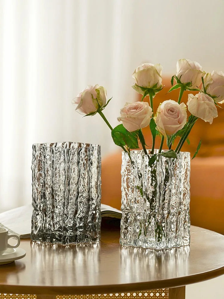 Elevate your space with the refined elegance of the Creative Glacier Glass Vase. Crafted from clear glass with a textured, ice-like surface, this vase captures light beautifully, resembling the natural shimmer of a glacier. Its transparent design complements any flower arrangement or minimalist interior style.