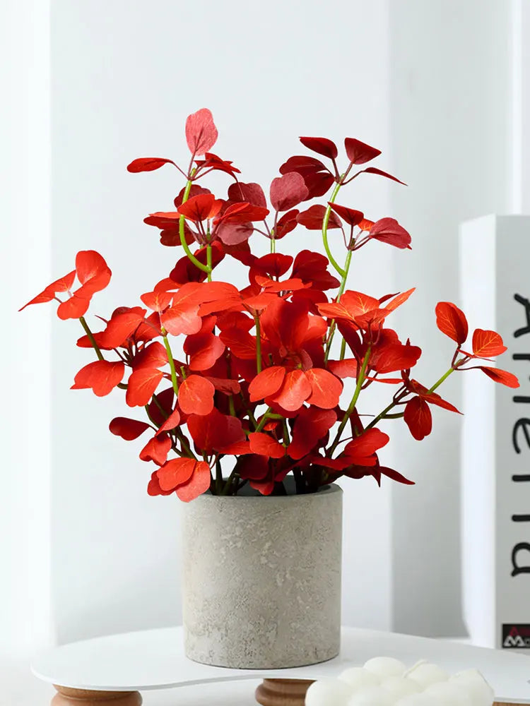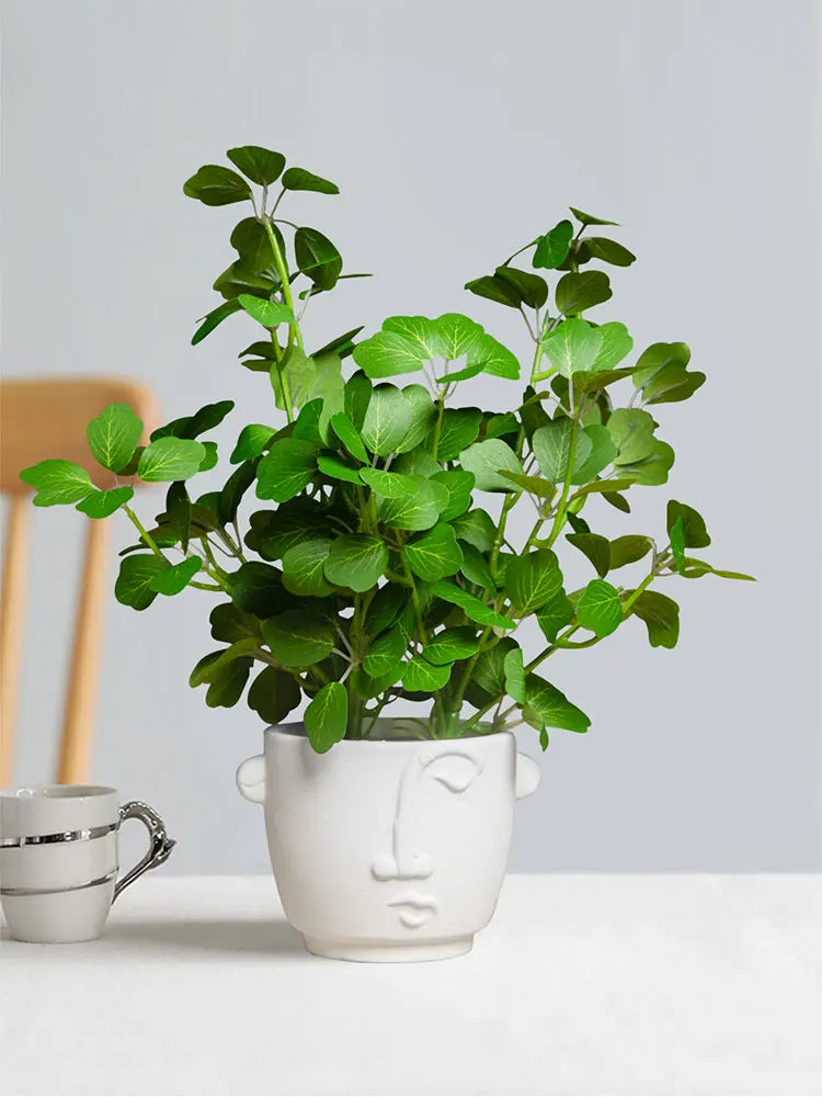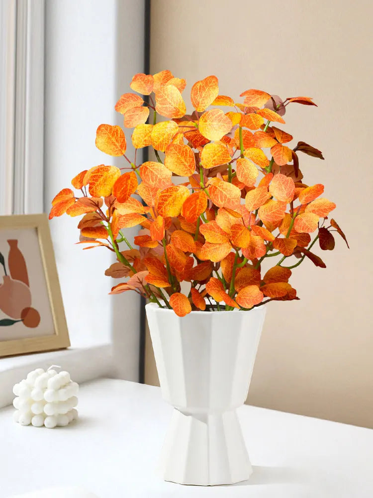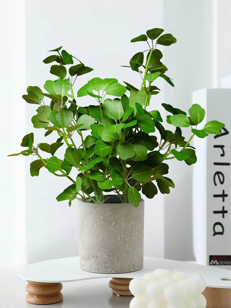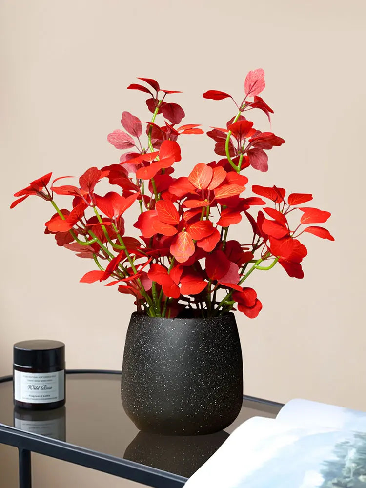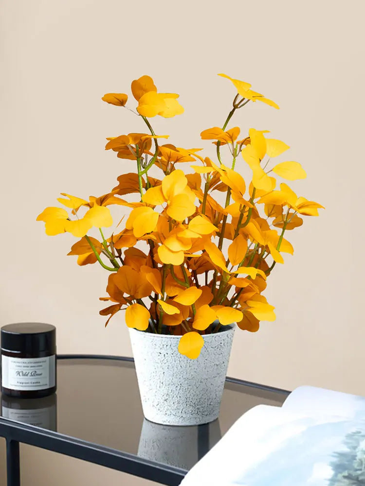Crafted from high-quality silk and durable plastic, this faux plant maintains its shape and color over time without watering or maintenance. The detailed leaf textures create a natural appearance, making it suitable for both modern and cozy interiors.