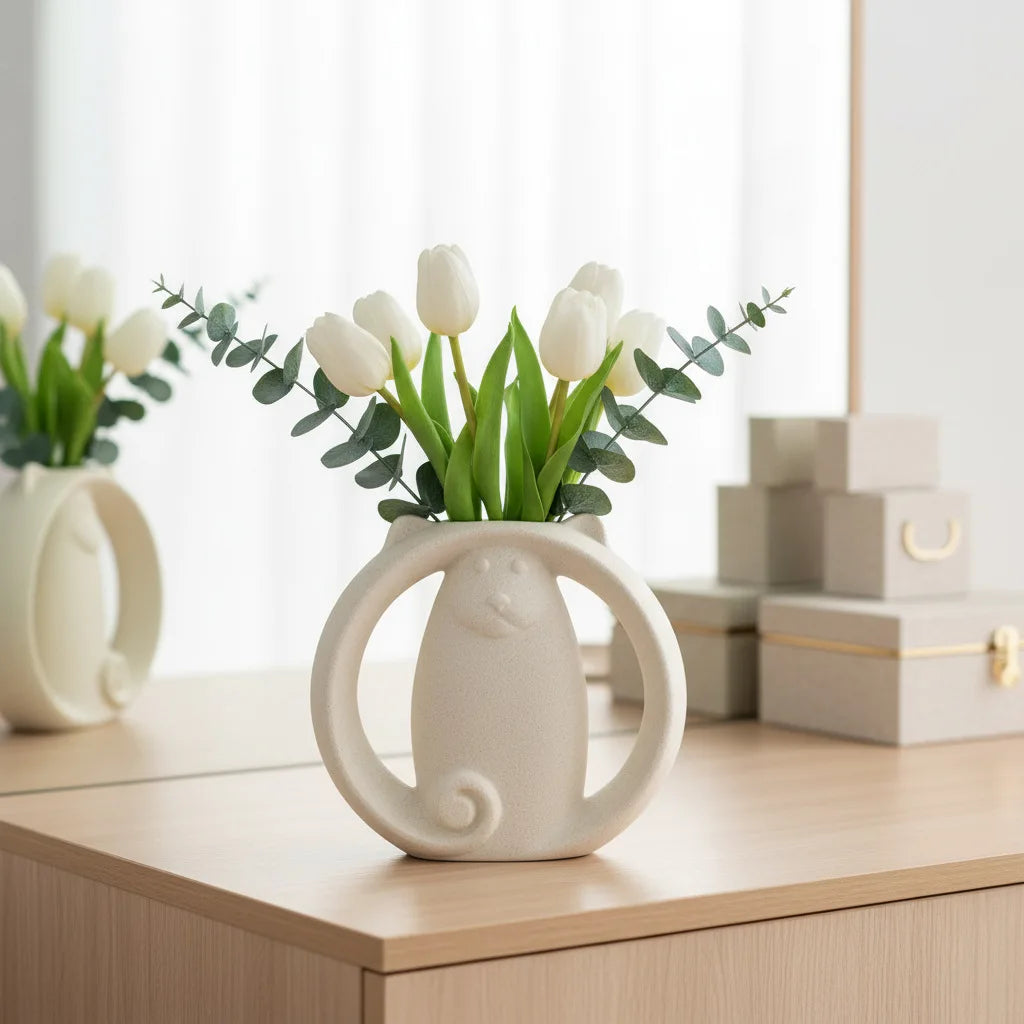 Abstract Cat Ceramic Vase – Modern Minimalist Animal Decor