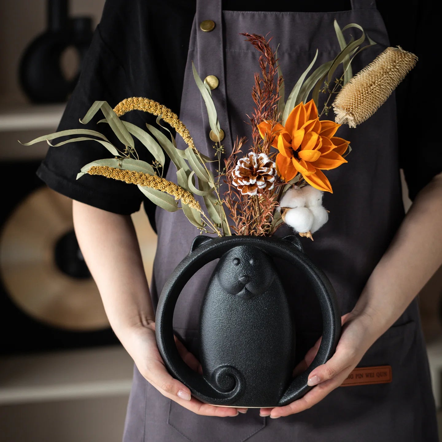 • Use: Dried flowers, pampas grass, or standalone décor