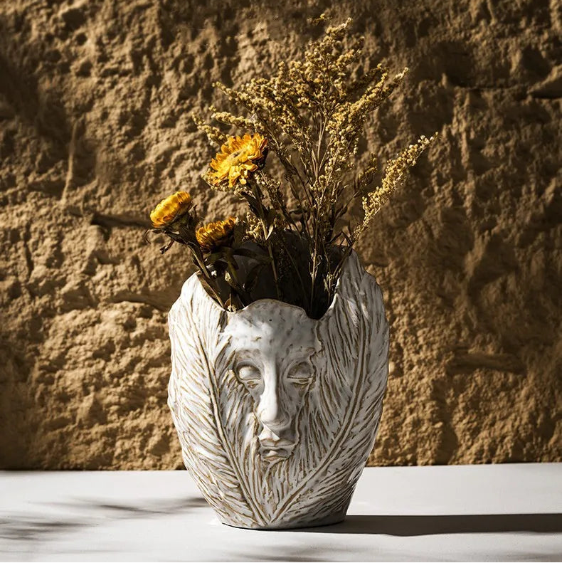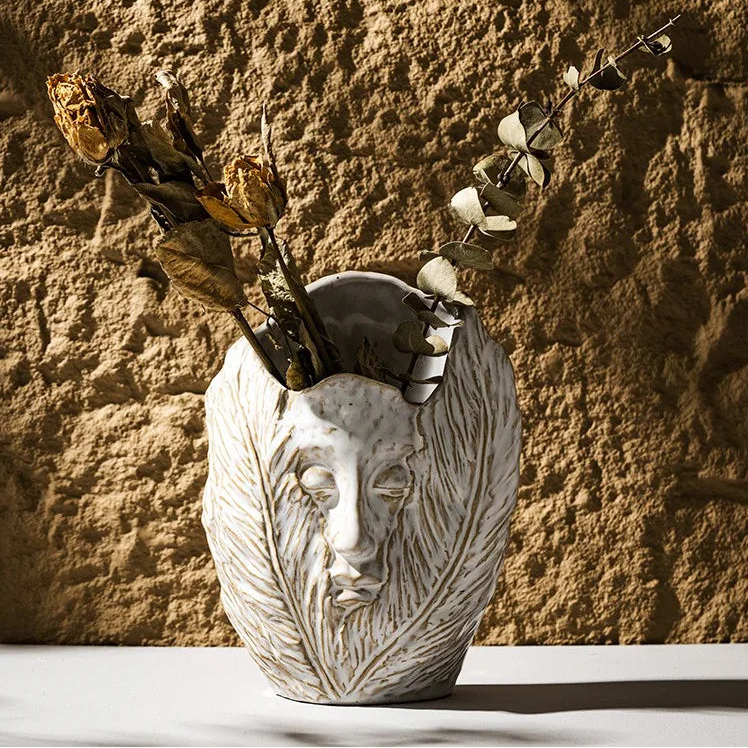 Abstract Face Ceramic Vase – Nordic Tabletop Decor