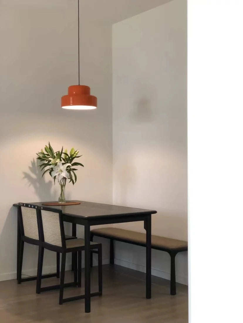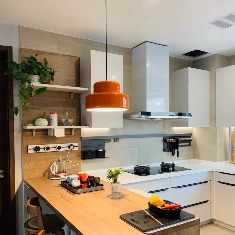 Illuminate your space with timeless elegance using this Bauhaus Vintage Orange Pendant Lamp. Featuring a sleek iron shade in a vibrant orange finish, this Nordic-inspired chandelier blends modern minimalism with retro charm, creating a bold focal point for any interior.