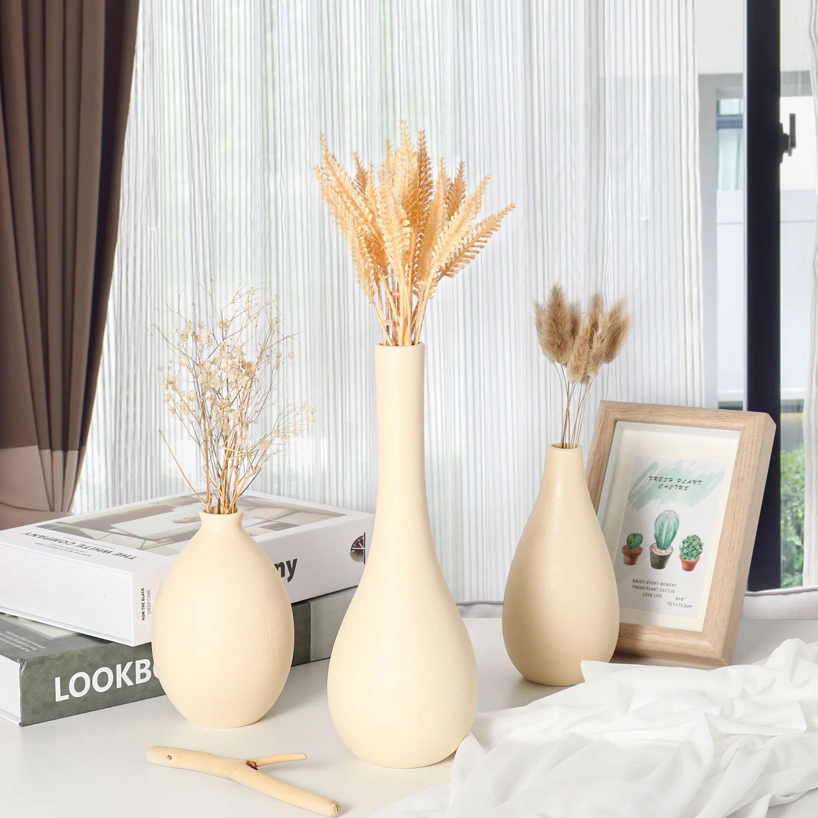 Perfect for living rooms, desktops, or office spaces, this decorative vase enhances your decor whether displayed alone or with fresh flowers or pampas grass. Its neutral beige hue pairs effortlessly with any color palette, adding warmth and sophistication to your surroundings.