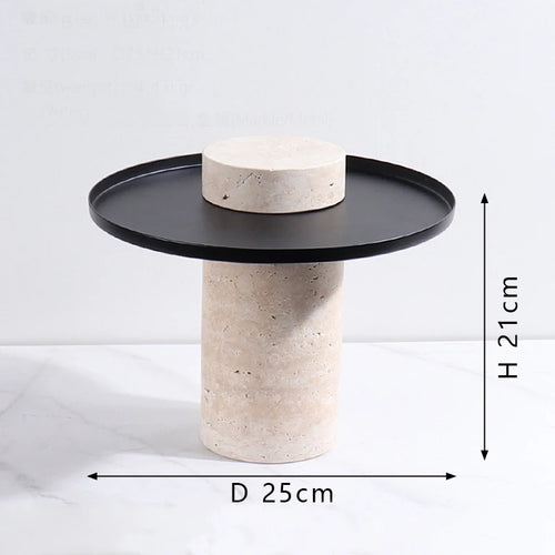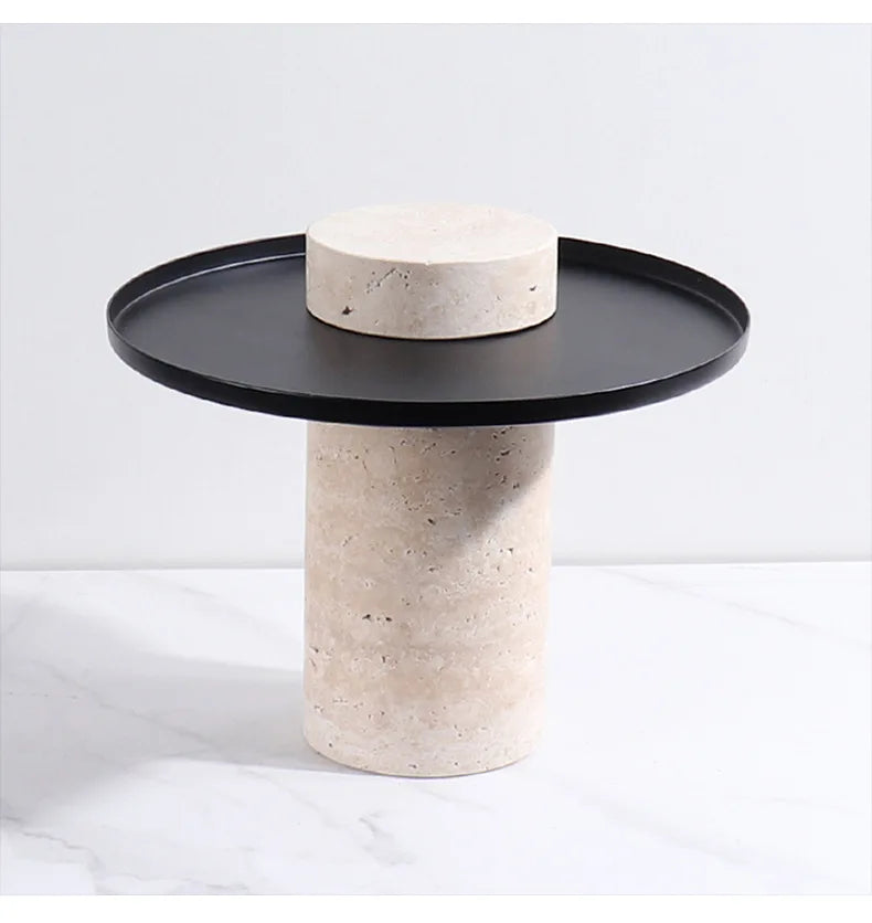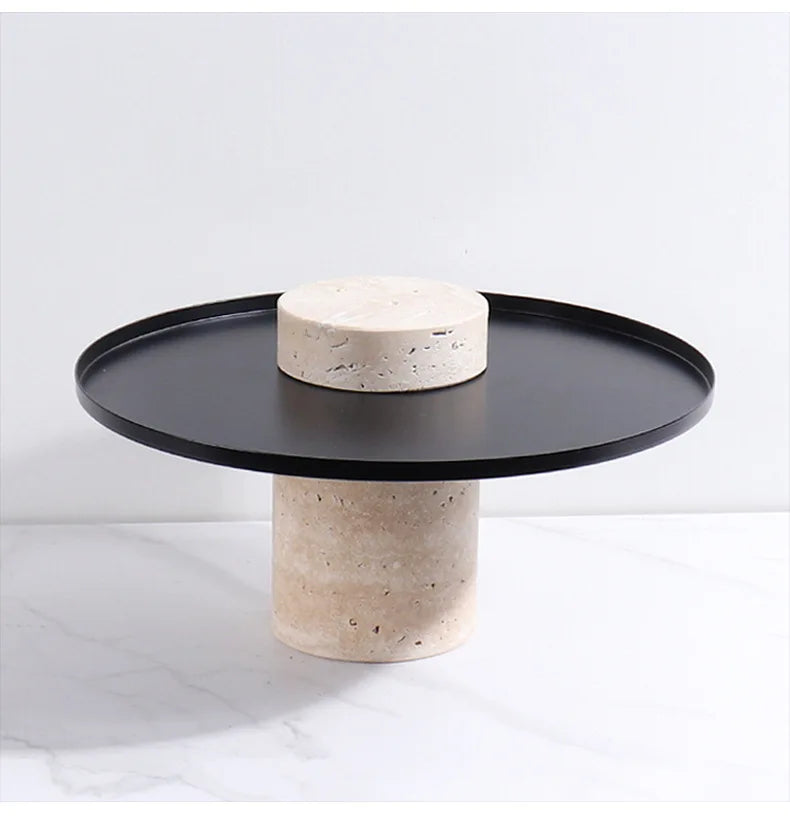 Bring refined elegance to your table with this beige travertine serving tray, crafted to elevate hospitality with natural stone beauty. Its minimalist silhouette and metal base create a luxurious balance of texture, weight, and durability.