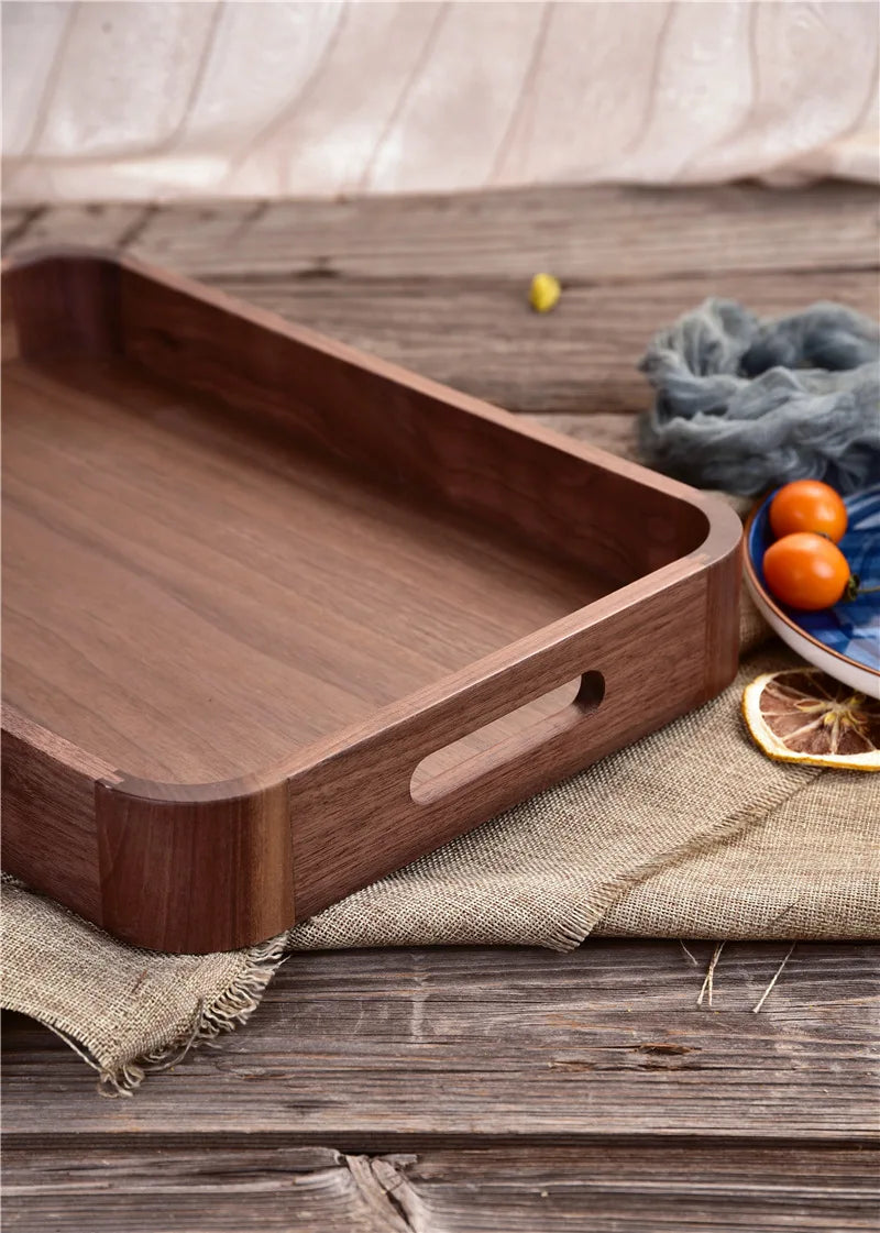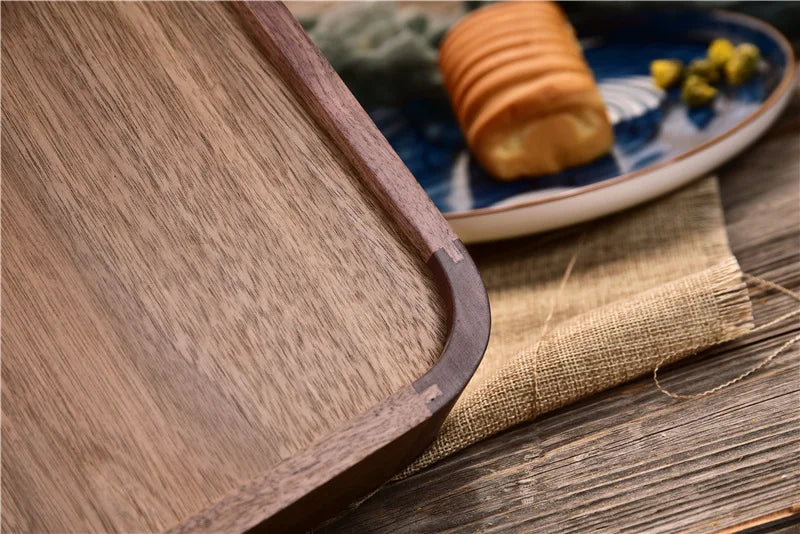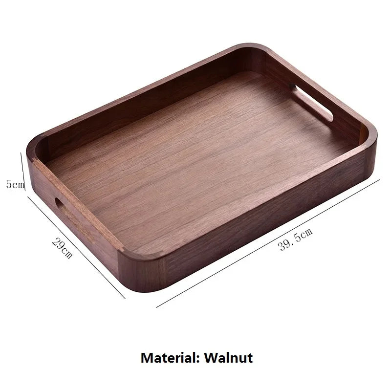 Perfect for serving breakfast, afternoon tea, fruits, or drinks, this tray is designed for both daily use and stylish display. The solid walnut structure ensures long-lasting durability, while the ergonomic handles make it comfortable to carry — ideal for home, hotels, or cafés.