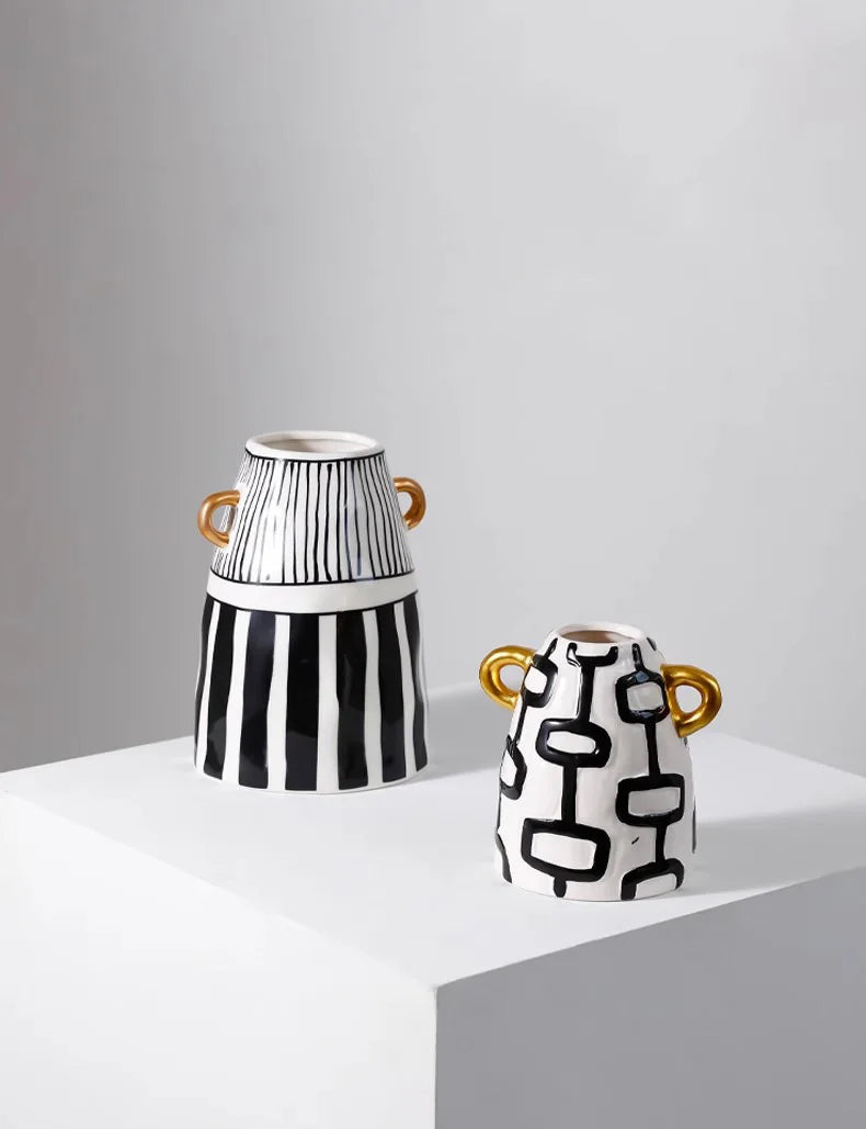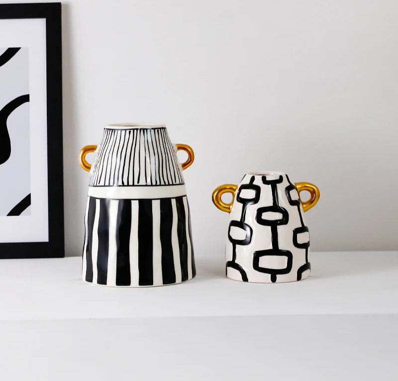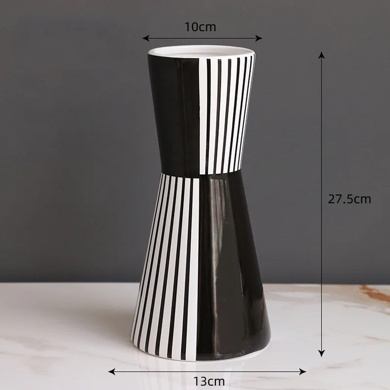 Black & White Striped Ceramic Vase – Modern Home Decor