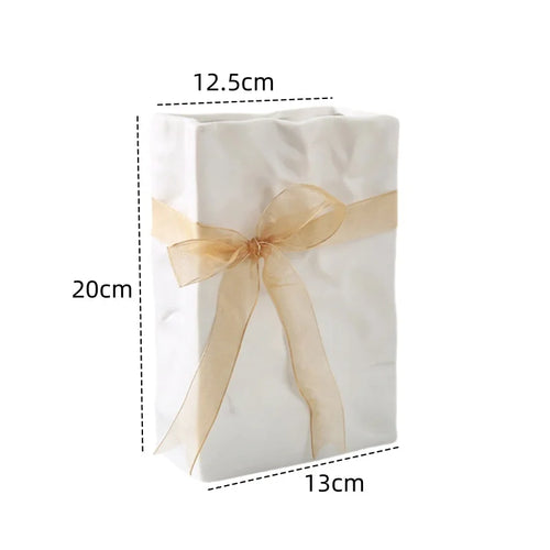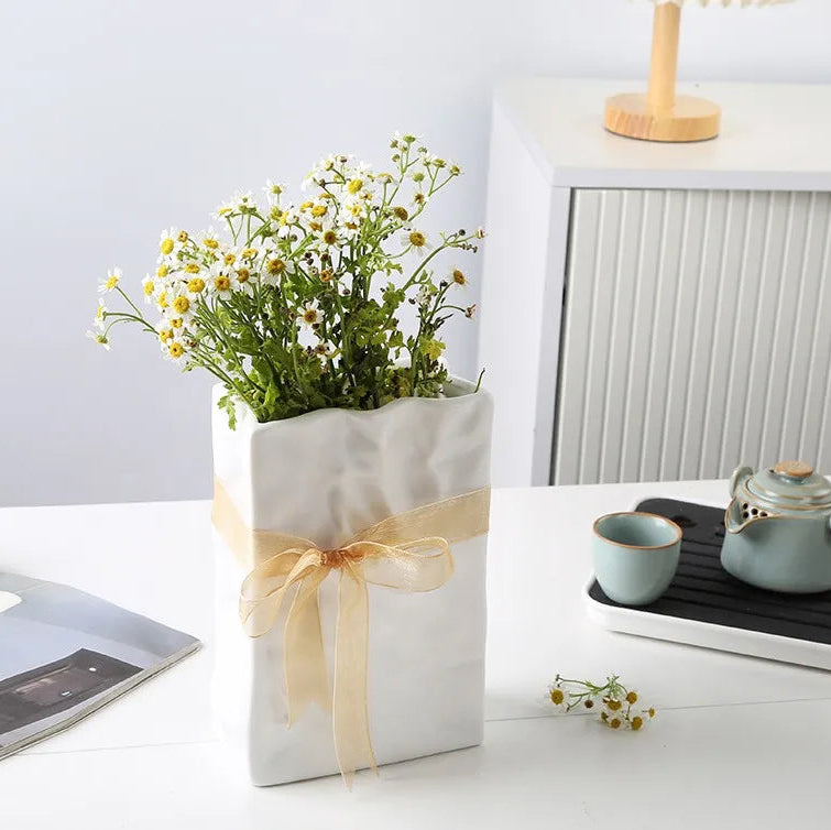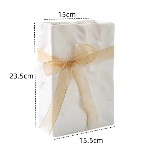 Ceramic Paper Bag Vase – Nordic Modern Home Decoration