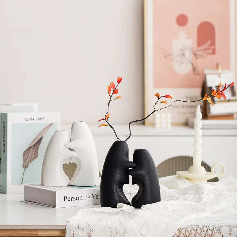 Couple Hug Ceramic Vase Set – Abstract Heart Home Décor