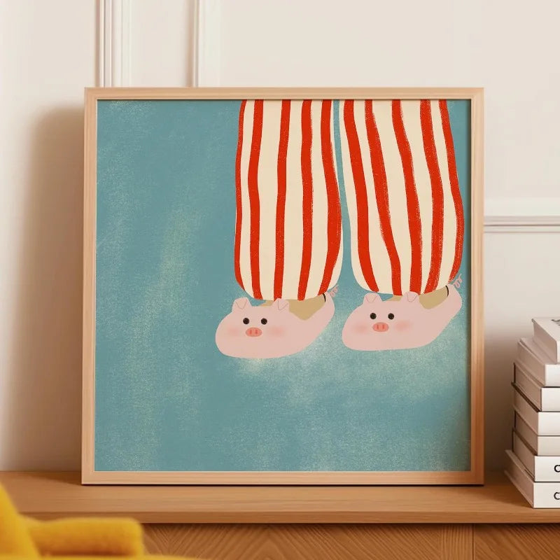 Bring playful charm to your home with this Cute Bunny Slippers Poster, a whimsical pastel canvas art piece that adds warmth and personality to any space. With its soft pink and blue tones, this print evokes cozy bedtime moments, making it perfect for kids' rooms, nurseries, or modern bedrooms.