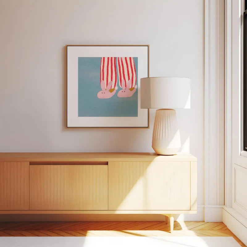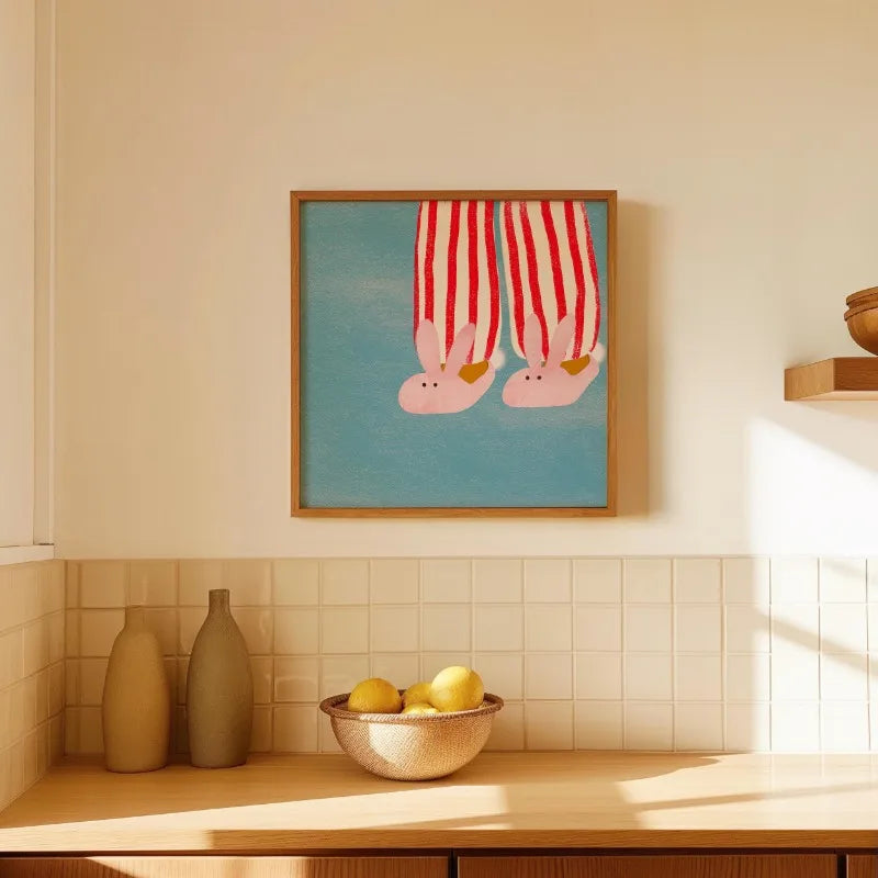 Cute Bunny Slippers Poster – Pastel Canvas Wall Art