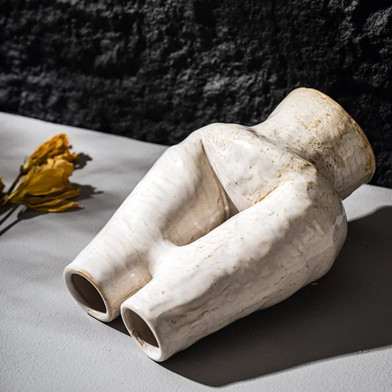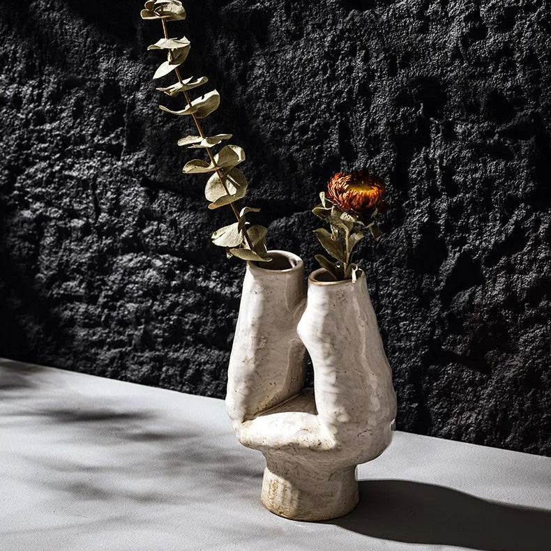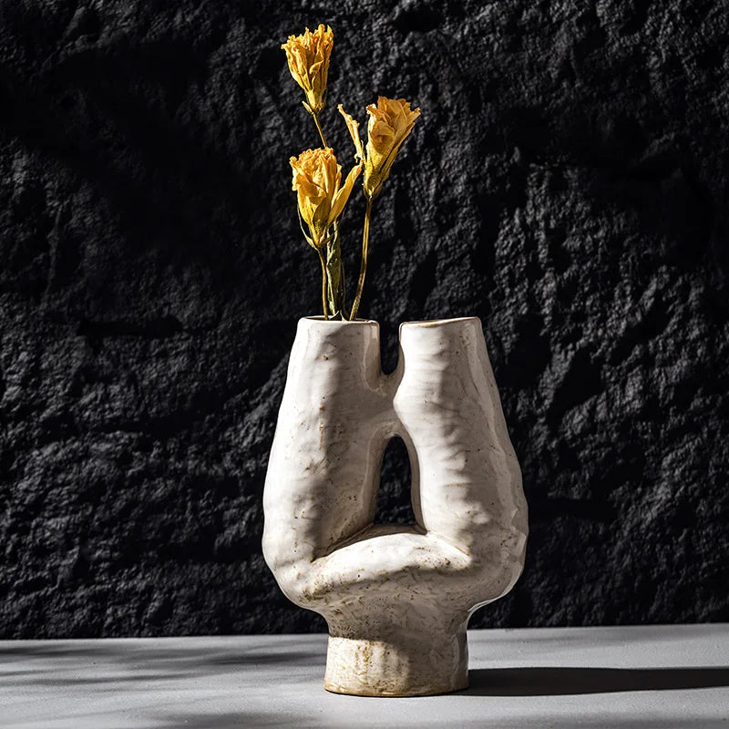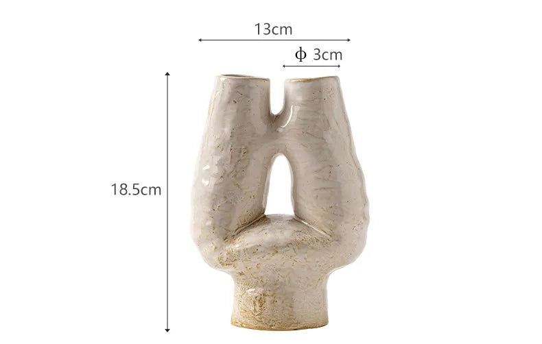 Double Mouth H Ceramic Vase – Nordic Wabi-Sabi Home Decor
