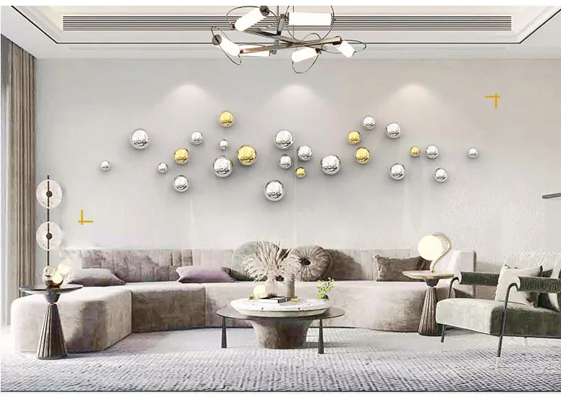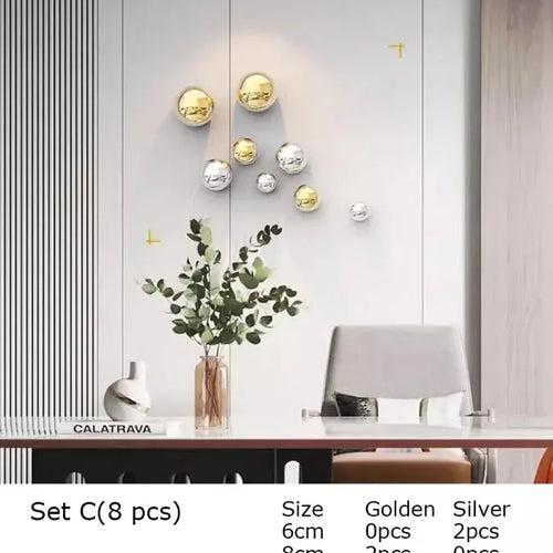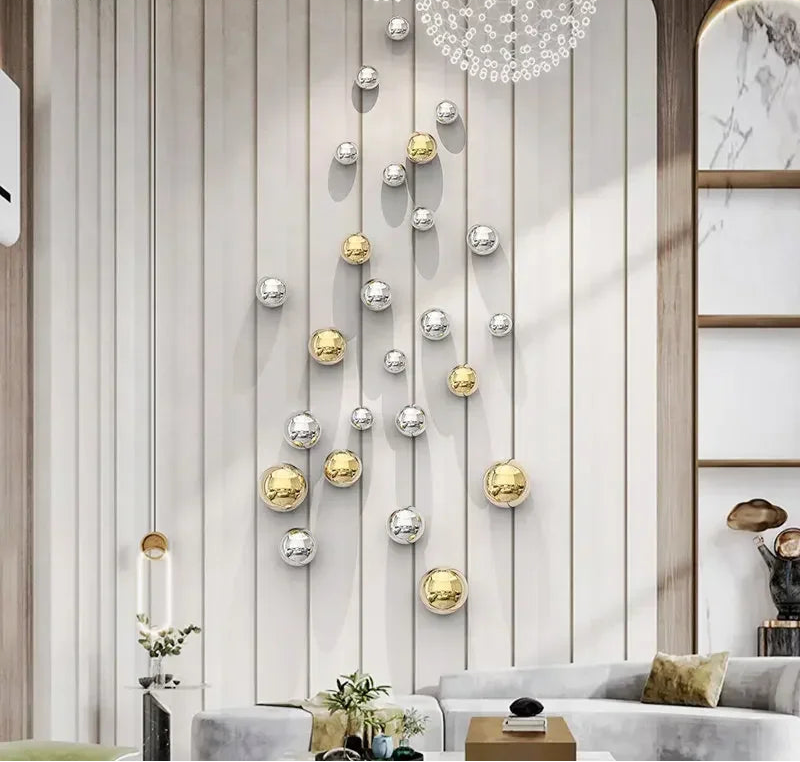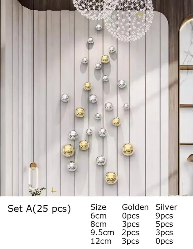 Golden and Silver Ball Wall Hanging Set – Modern Decor