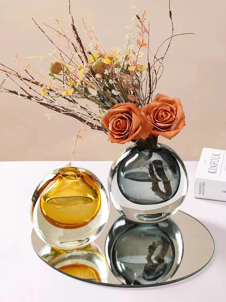 Gradient Glass Vase – Transparent Round Flower Pot Decor