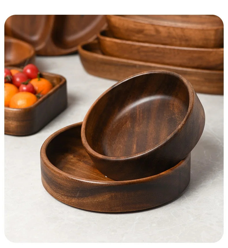 Bring natural elegance to your dining experience with this Acacia Wood Snack & Salad Plate. Crafted from solid acacia wood, each piece features a unique grain pattern, ensuring that every tray is one-of-a-kind. Its multi-section design is perfect for serving fruits, nuts, appetizers, salads, or dried snacks, making it ideal for everyday meals, parties, or special gatherings.