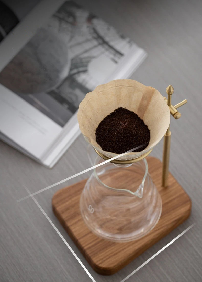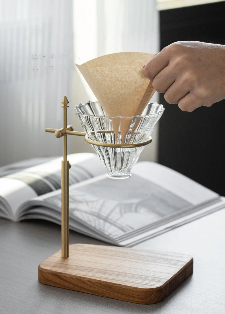 Adjustable Solid Wood Coffee Drip Stand – Brass Holder