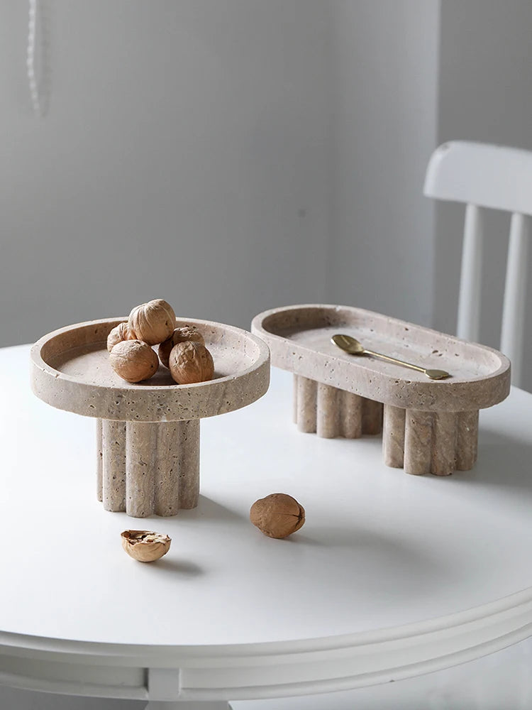 Luxury Marble Tray with Legs – Travertine Decorative Dish
