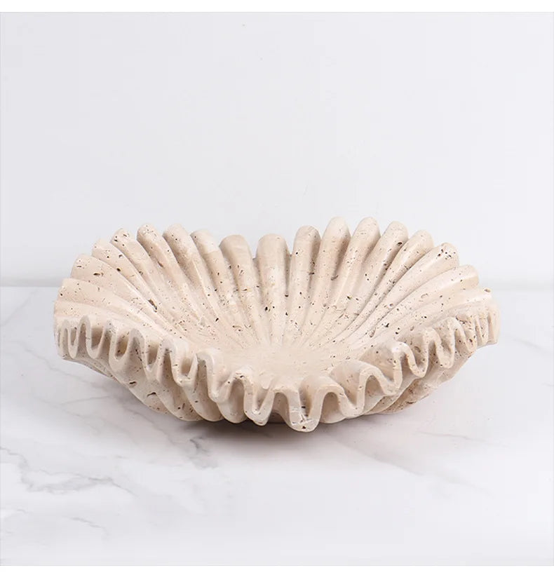 Travertine Marble Ruffle Bowl – Handcrafted Decorative Tray