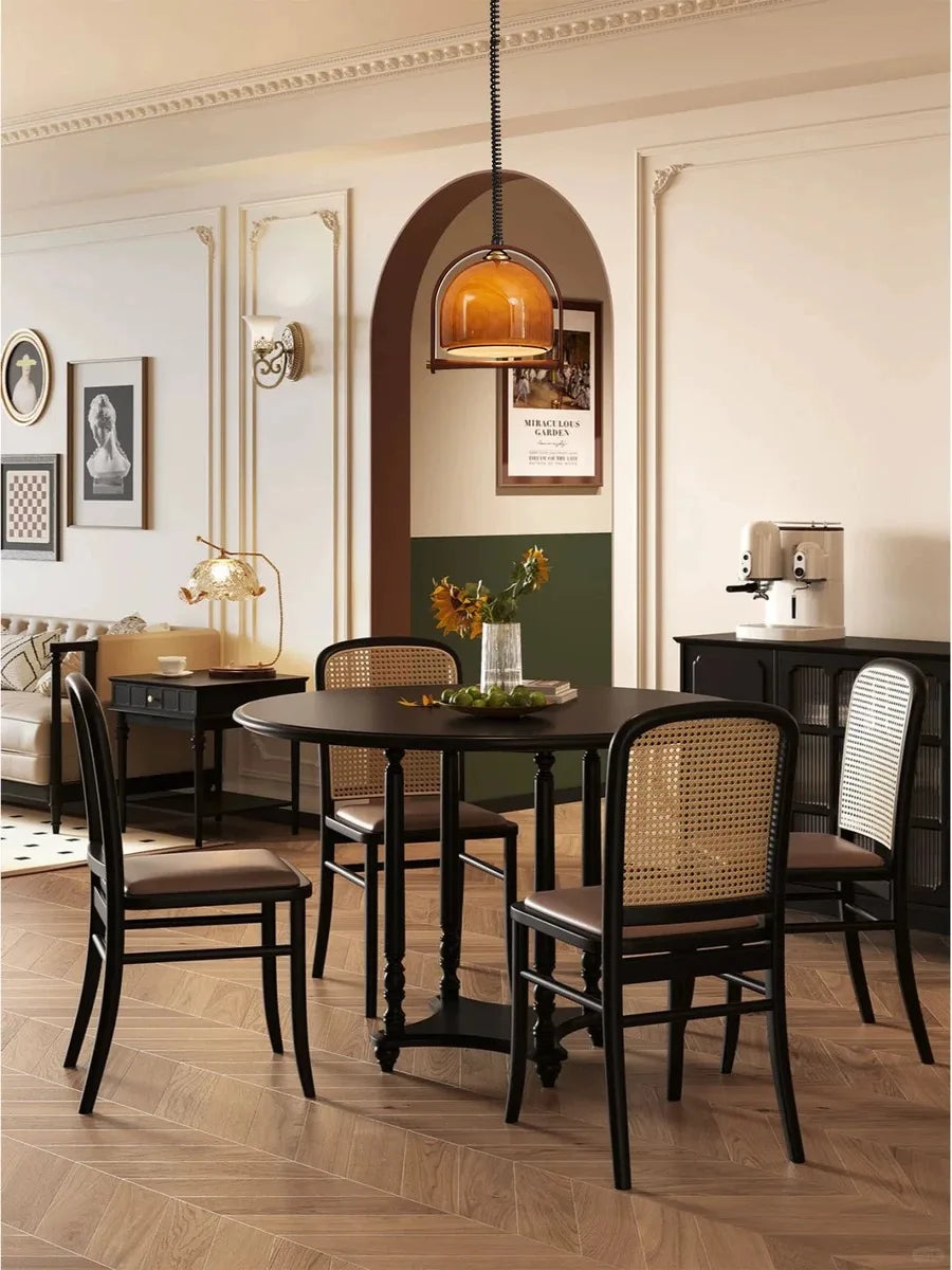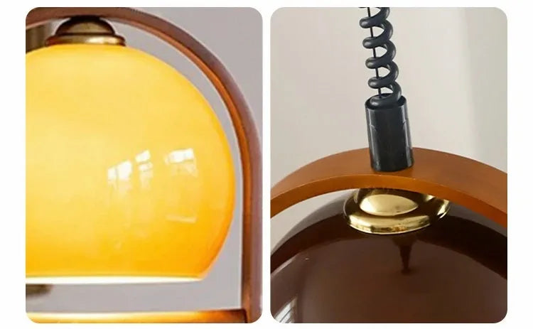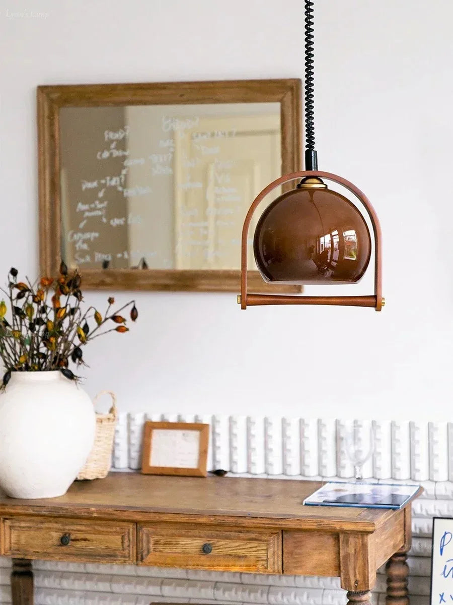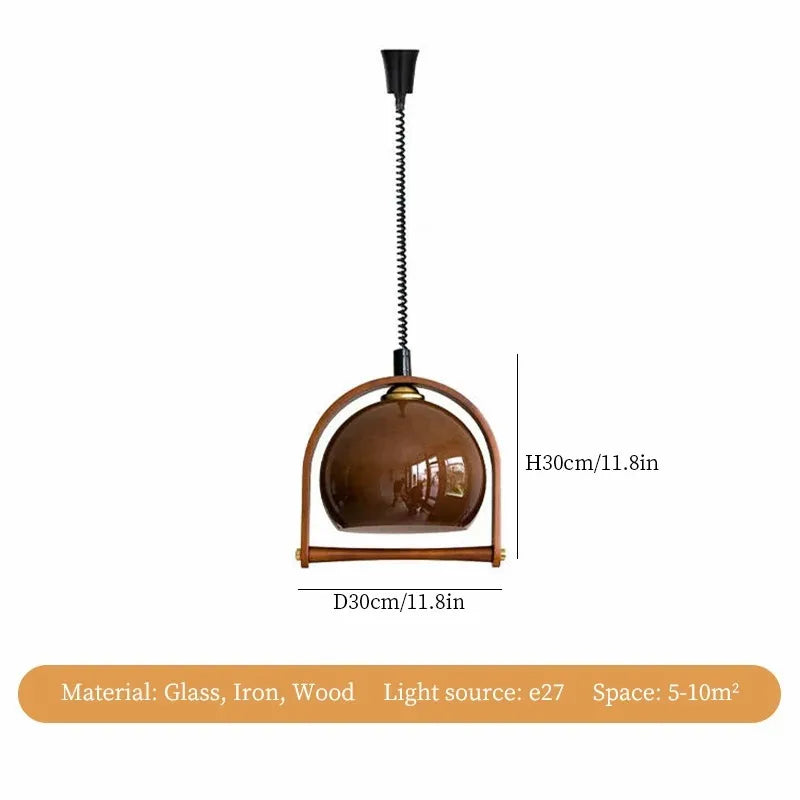 Crafted with durable wood, copper, and glass, this adjustable hanging lamp offers both aesthetic appeal and practicality. Its E27 LED bulb provides soft, warm illumination, creating an inviting atmosphere while highlighting the lamp’s classical design.