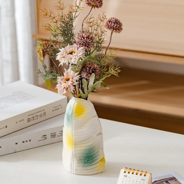 Modern Banana Leaf Ceramic Vase – Colorful Abstract Glazed Decor
