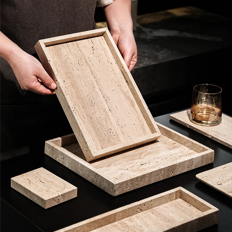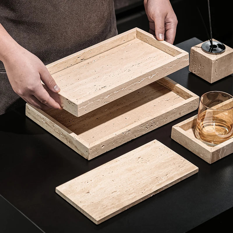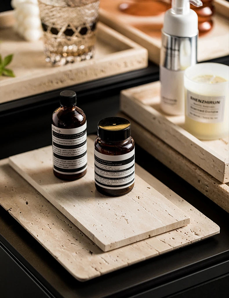 Natural Travertine Counter Tray for Bathroom & Kitchen