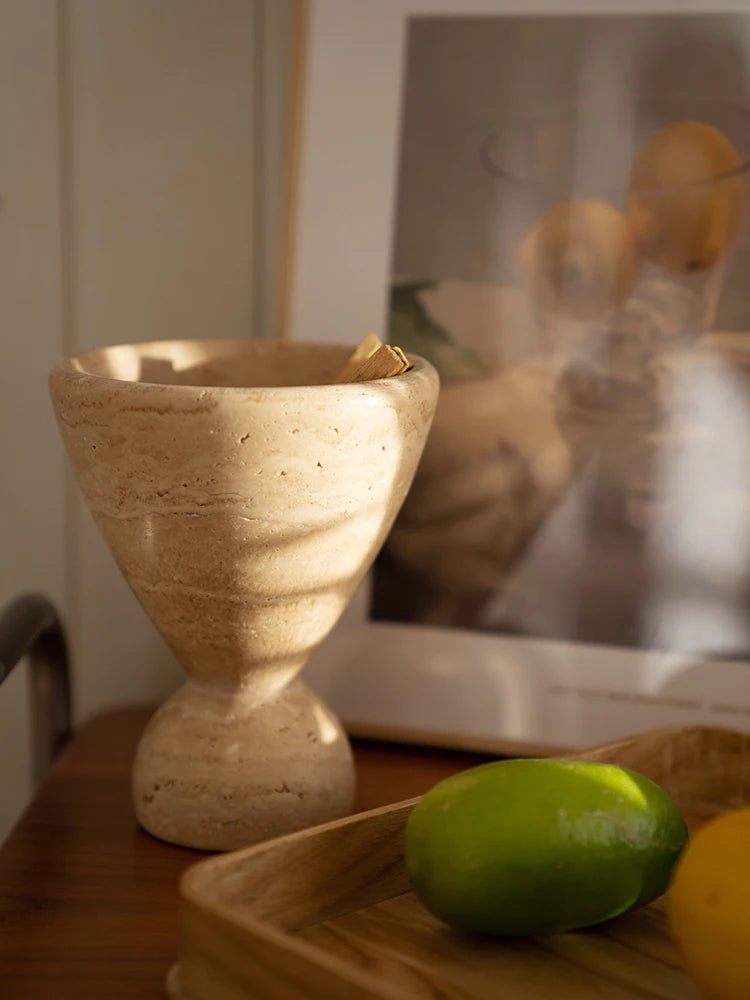 Crafted from solid beige travertine, this natural marble incense burner adds a refined and grounding touch to any space. Its handcrafted design highlights the organic textures of the stone, offering a luxurious yet minimalist look suitable for modern, rustic, or traditional interiors.