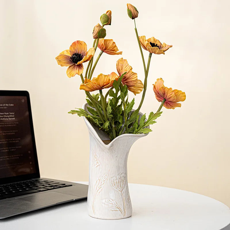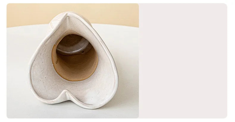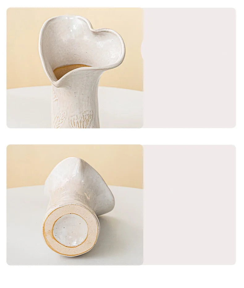 Bring sculptural elegance to your space with this Nordic Ceramic Wavy Vase, designed with a heart-shaped mouth and gentle curves that create a refined, modern silhouette. Its glazed ceramic surface features delicate leaf textures that add visual depth and a natural touch to your home décor.