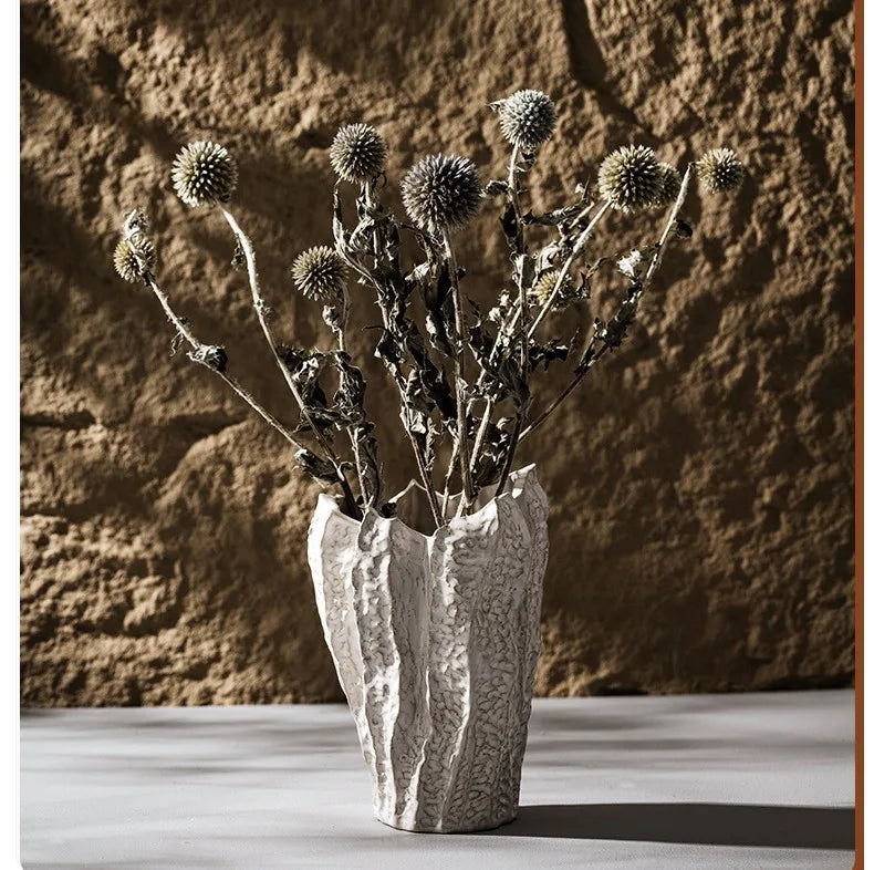 Bring a touch of contemporary elegance to your home with this Nordic Irregular Ceramic Vase. Its unique asymmetrical design creates a striking visual accent, perfect for modern interior décor.