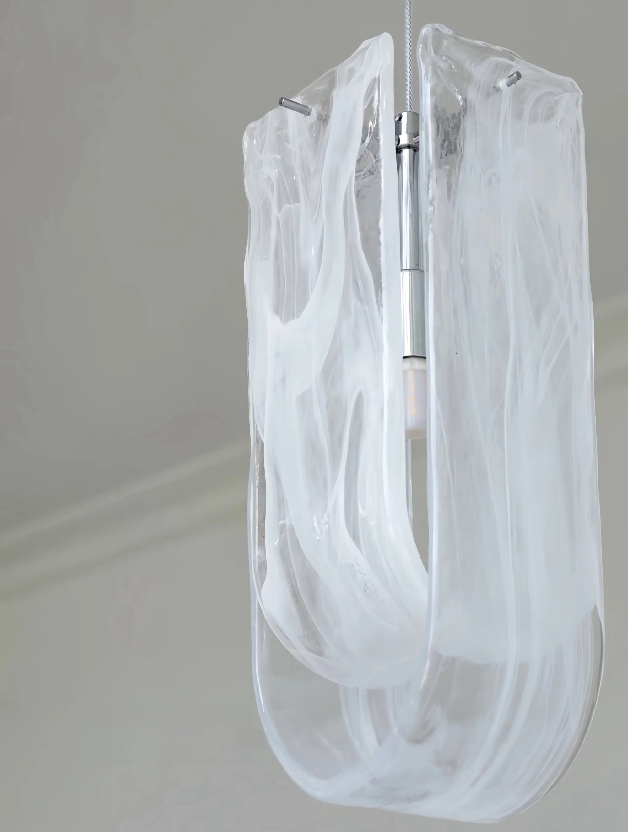 Illuminate your space with this Postmodern Cloud Glass Pendant Light, featuring an elegant asymmetric glass design that diffuses light softly for a warm and inviting atmosphere. Perfect for living rooms, dining areas, bedrooms, or cafés, it adds artistic charm and contemporary style.