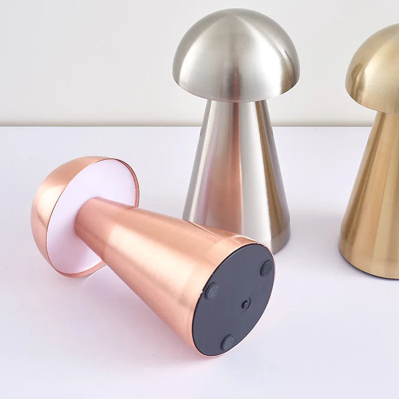 Illuminate your space with elegance and convenience using this Rechargeable LED Touch Table Lamp. Featuring a sleek mushroom-shaped design with a metallic finish, it adds a warm and modern glow to any setting — from cozy bedrooms to stylish restaurants or hotel lounges.