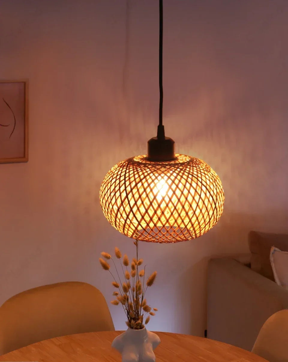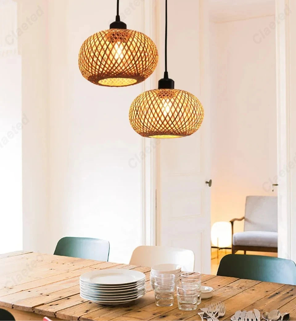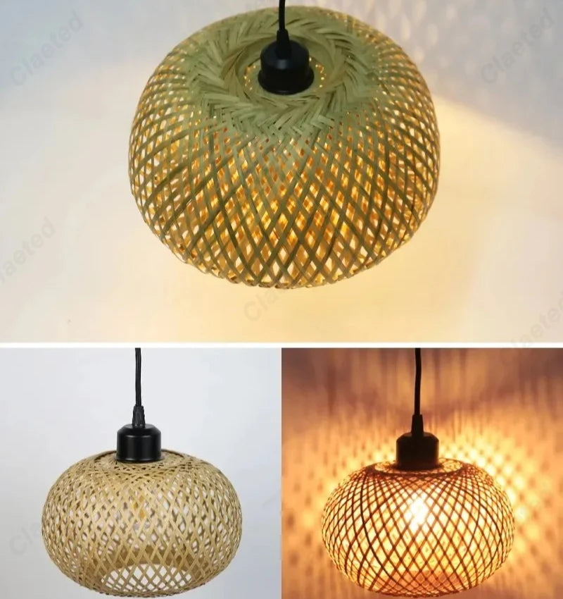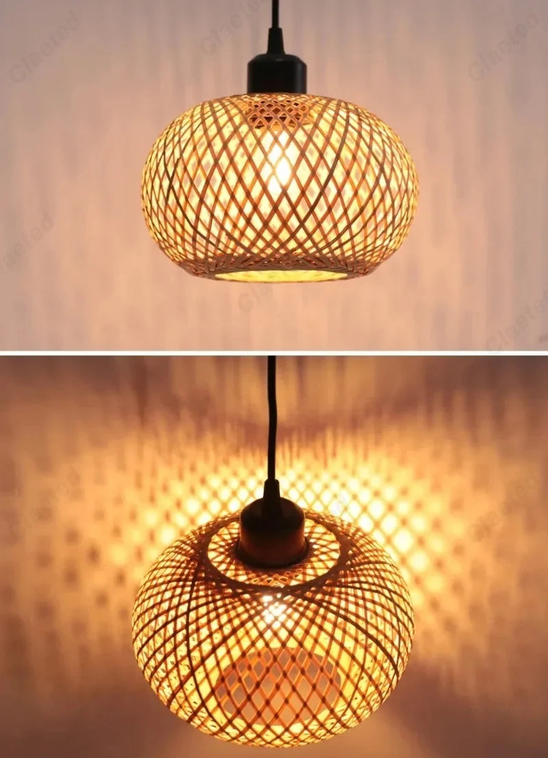 Retro Bamboo Rattan Pendant Light – Vintage LED Chandelier