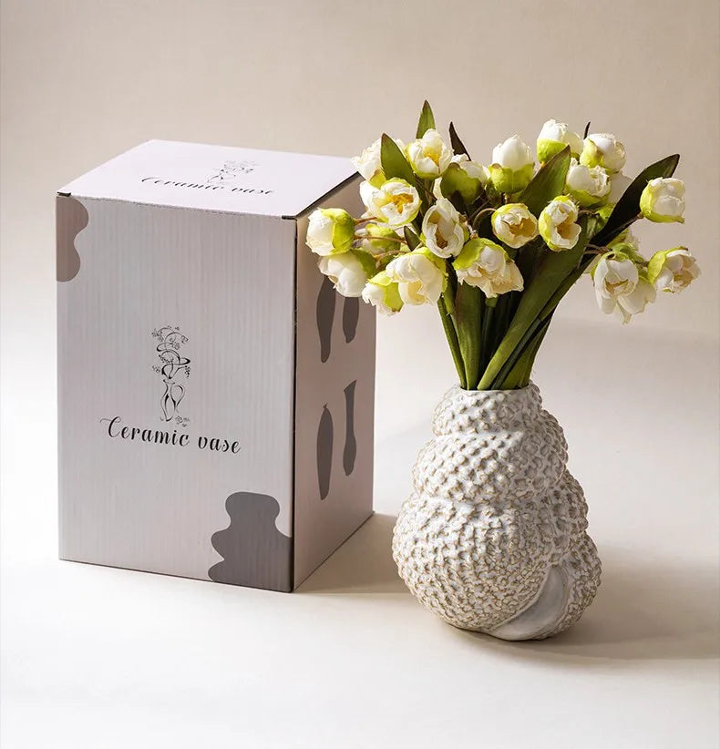 Retro Seashell Ceramic Vase – Modern Tabletop Decor