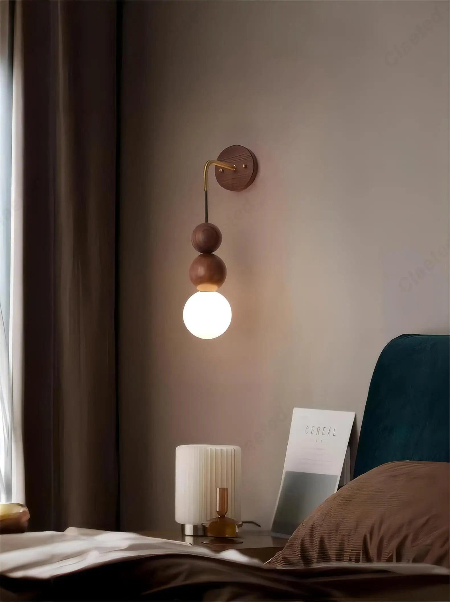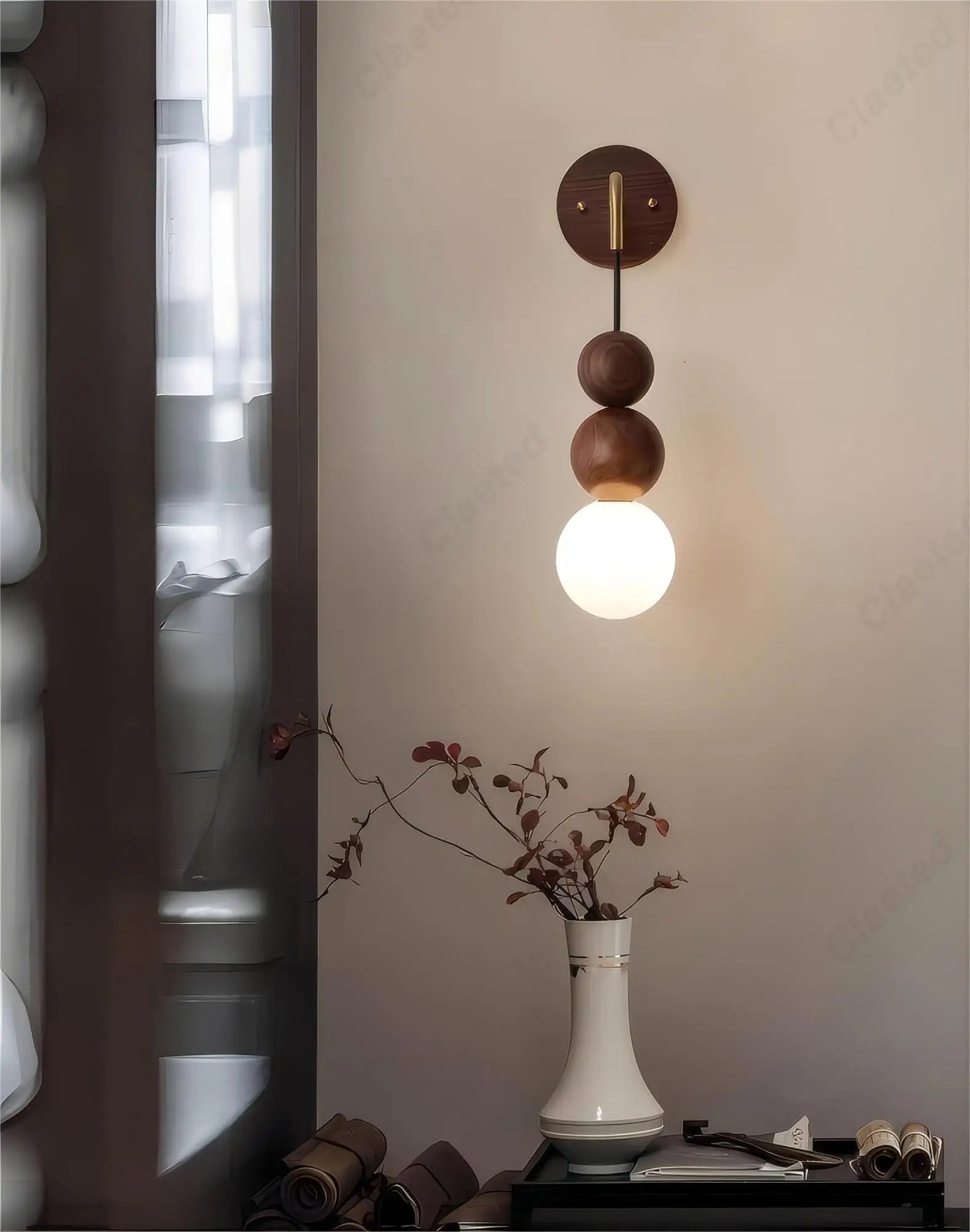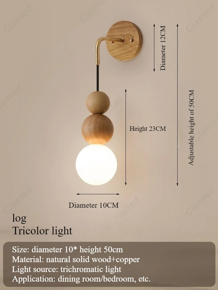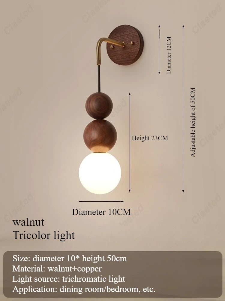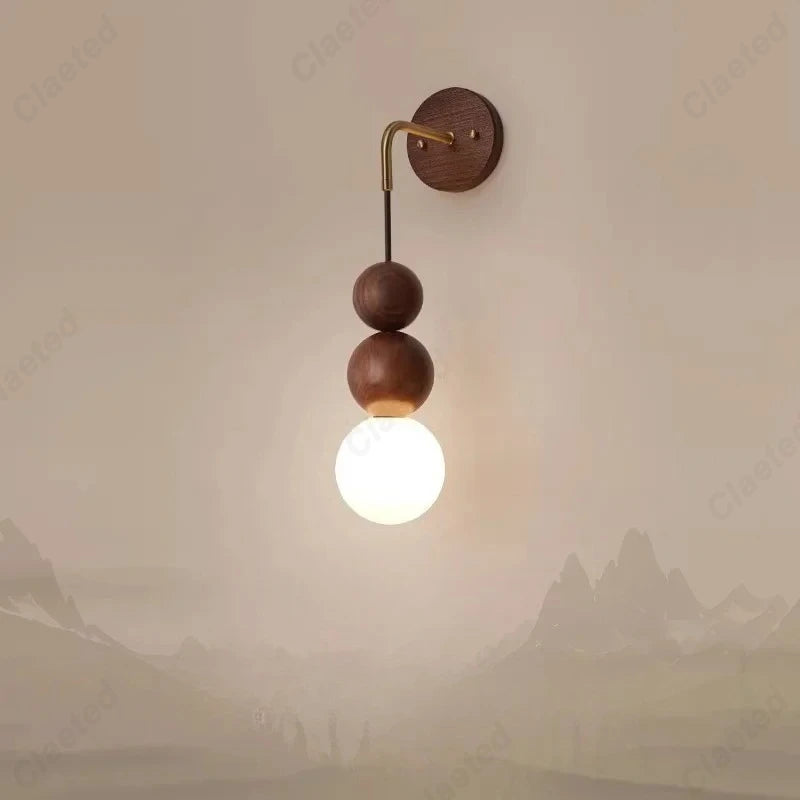 Retro Walnut Glass LED Wall Lamp – Luxury Decorative Light