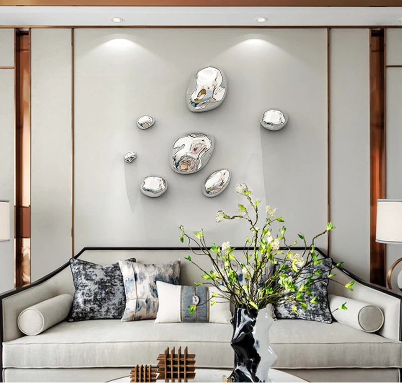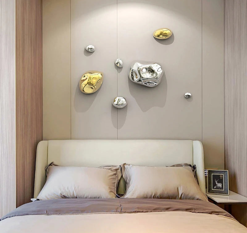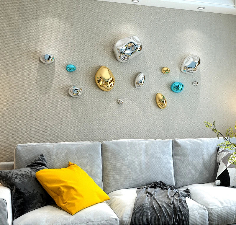 Transform your space with these Stereoscopic Stone Wall Hanging Ornaments, designed to add a touch of depth and modern artistry to your interior décor. With a realistic stone texture and sleek metallic plating finish, each piece creates a refined and contemporary look that enhances any wall background display.