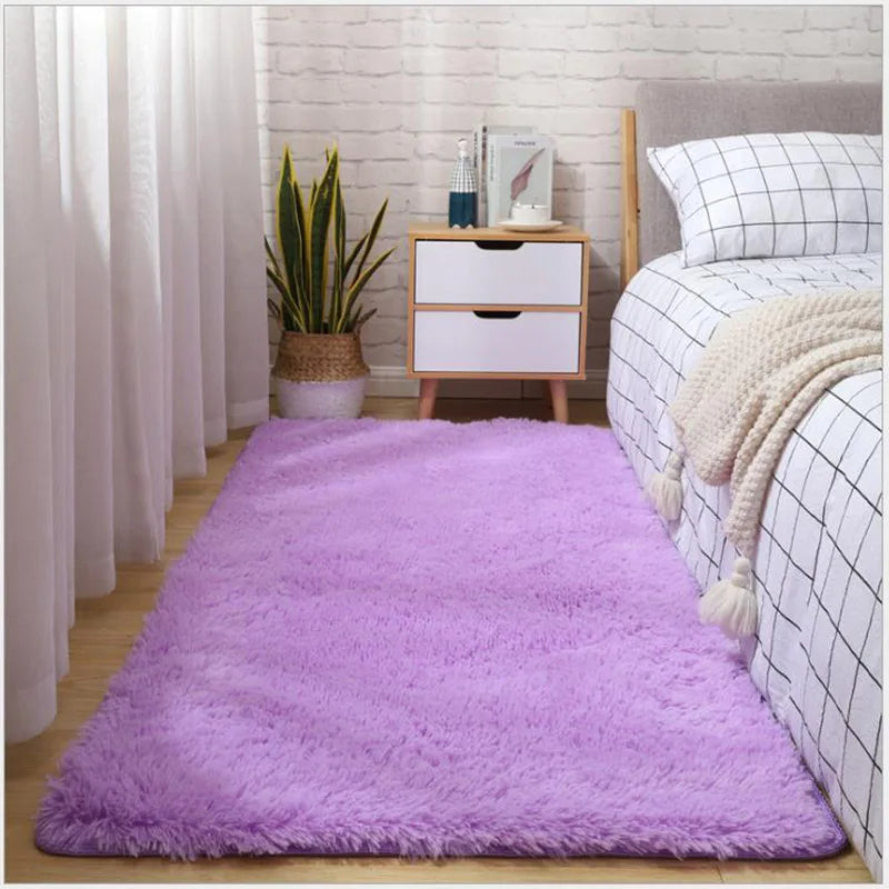 Invite warmth and comfort into your space with this thick fluffy rug, designed to elevate living rooms, bedrooms, and children's play areas. Its soft, silky texture creates a cozy atmosphere while providing a gentle feel underfoot.