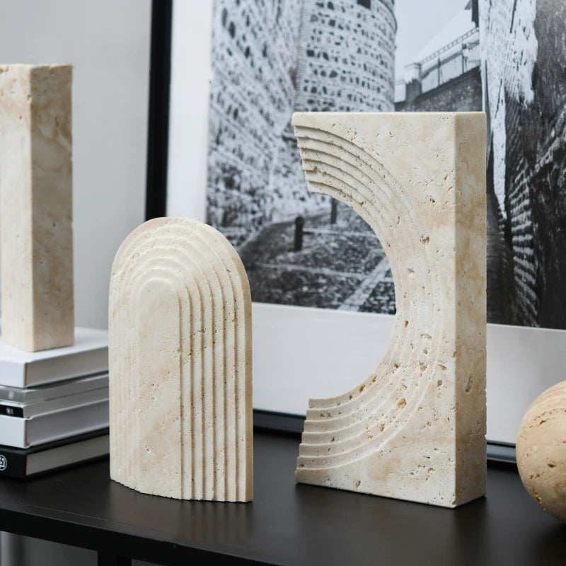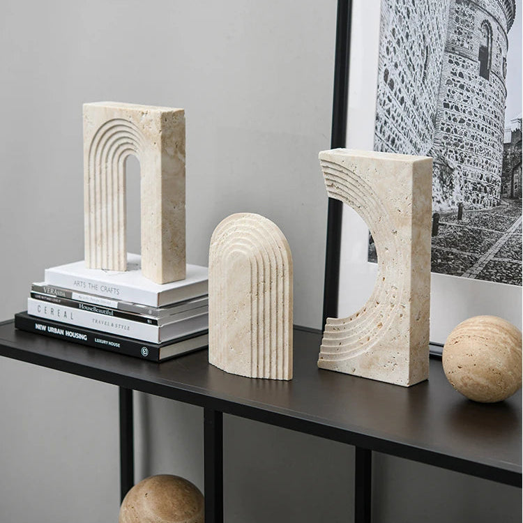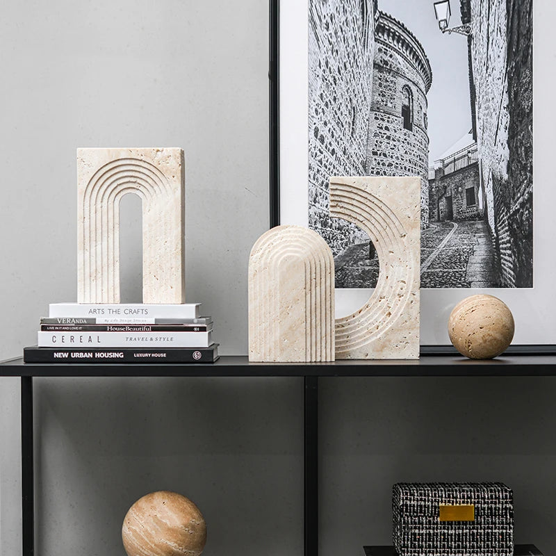 Travertine Marble Arch Sculpture – Minimalist Stone Home Decor