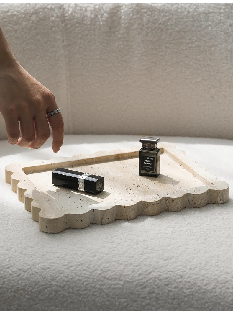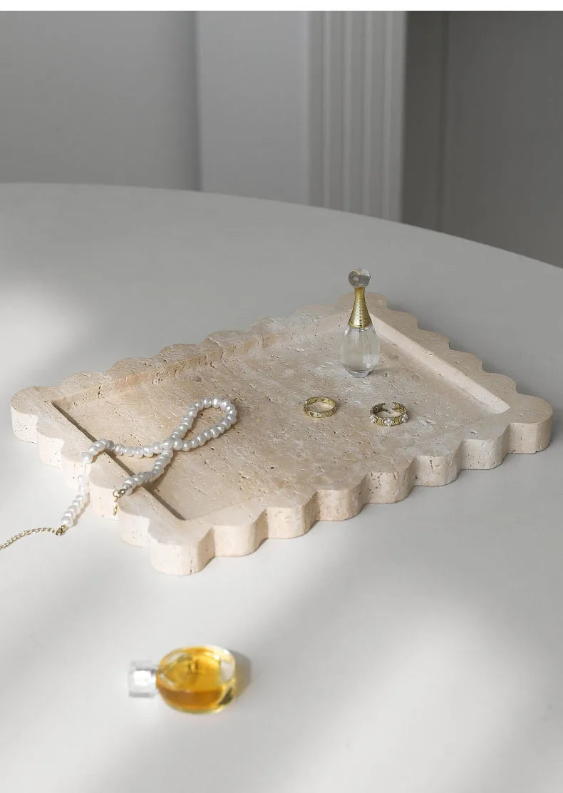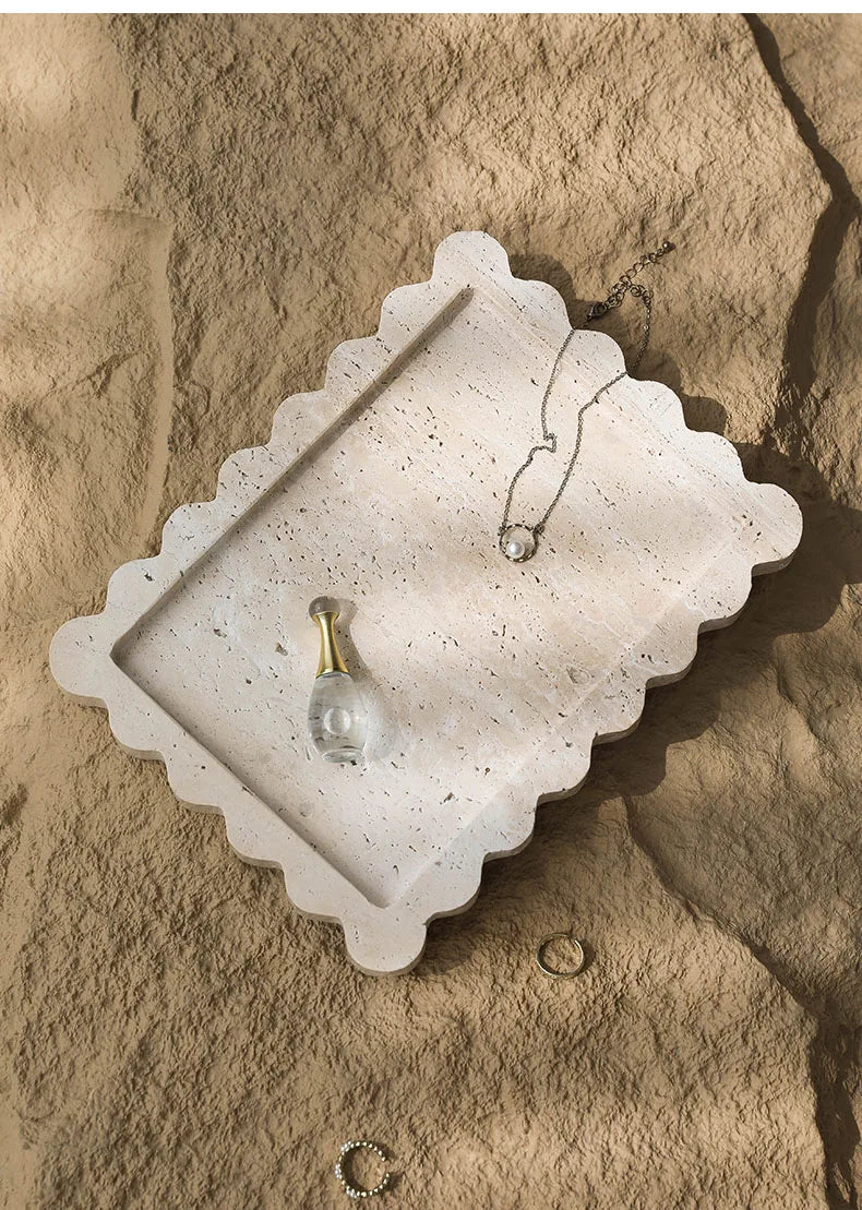 Travertine Scalloped Edge Vanity Tray