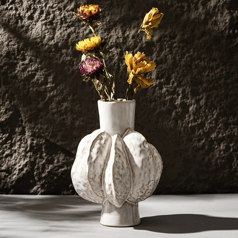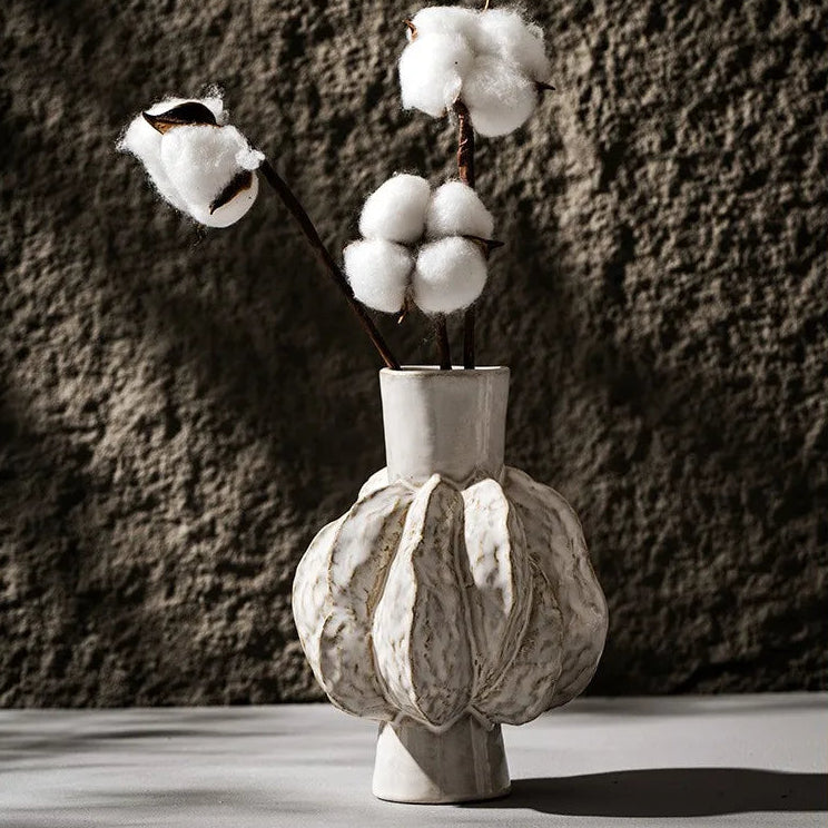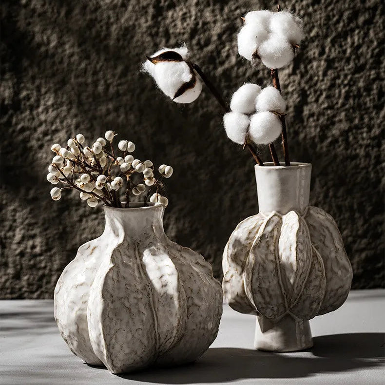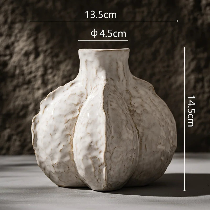 Crafted from premium ceramic and porcelain, this vase combines durability with refined texture and an elegant Nordic aesthetic. Its neutral tones and sculptural design effortlessly complement contemporary, minimalist, or Scandinavian-inspired interiors.