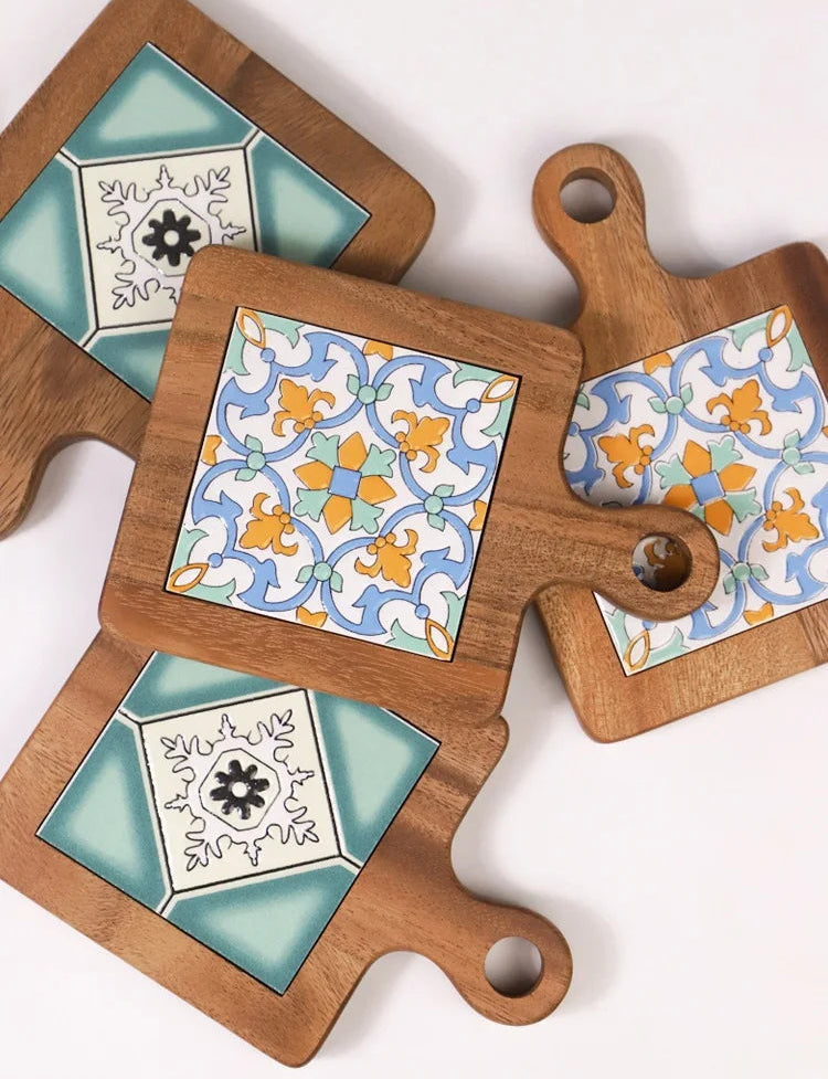 Its natural wood grain and vintage tile-inspired design add a warm, decorative touch to any table setting. Perfect for everyday use or special dinners, it blends effortlessly with farmhouse, Nordic, or minimalist interiors.