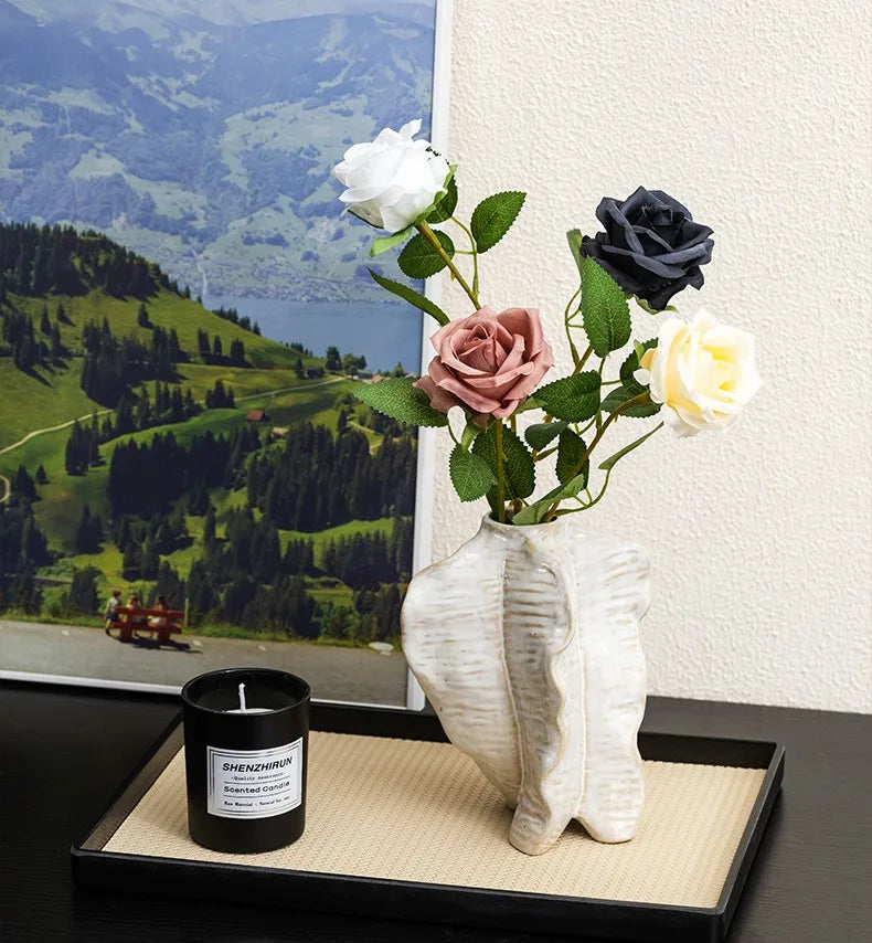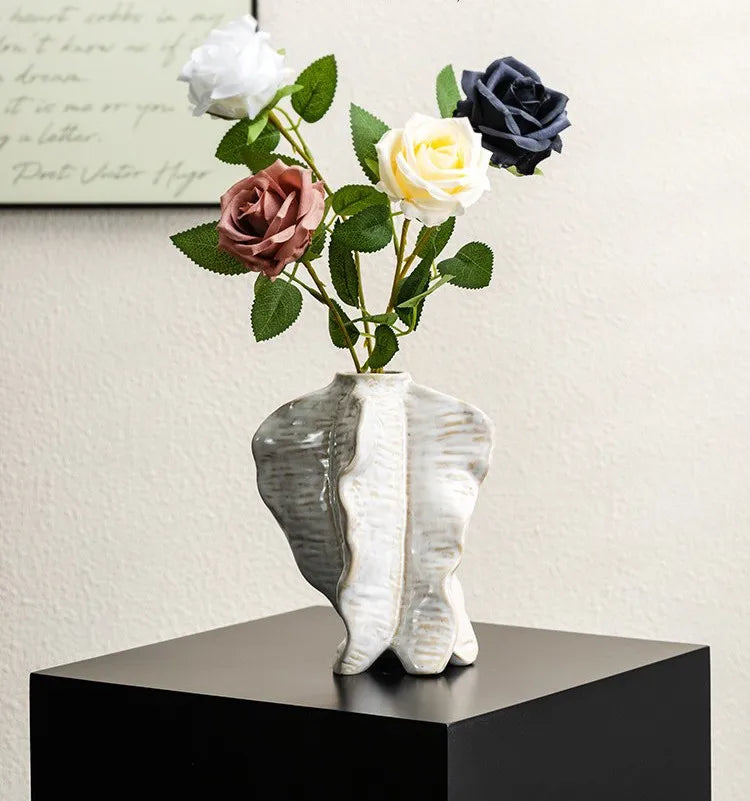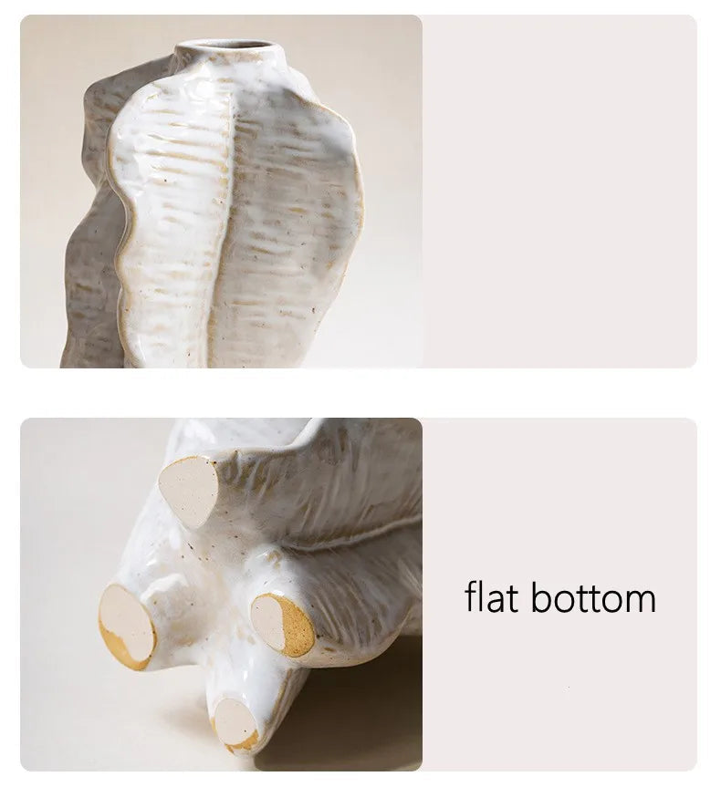 Add a touch of serenity to your home with this White Ceramic Vase, inspired by the Wabi Sabi philosophy. Its minimalist design and natural textures create a peaceful, contemplative atmosphere, perfect for tabletop display or as a centerpiece.