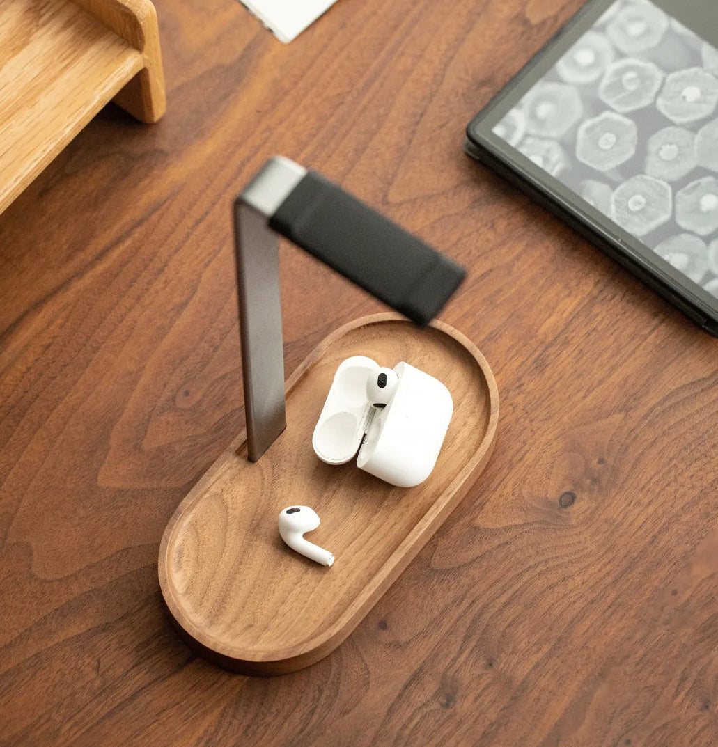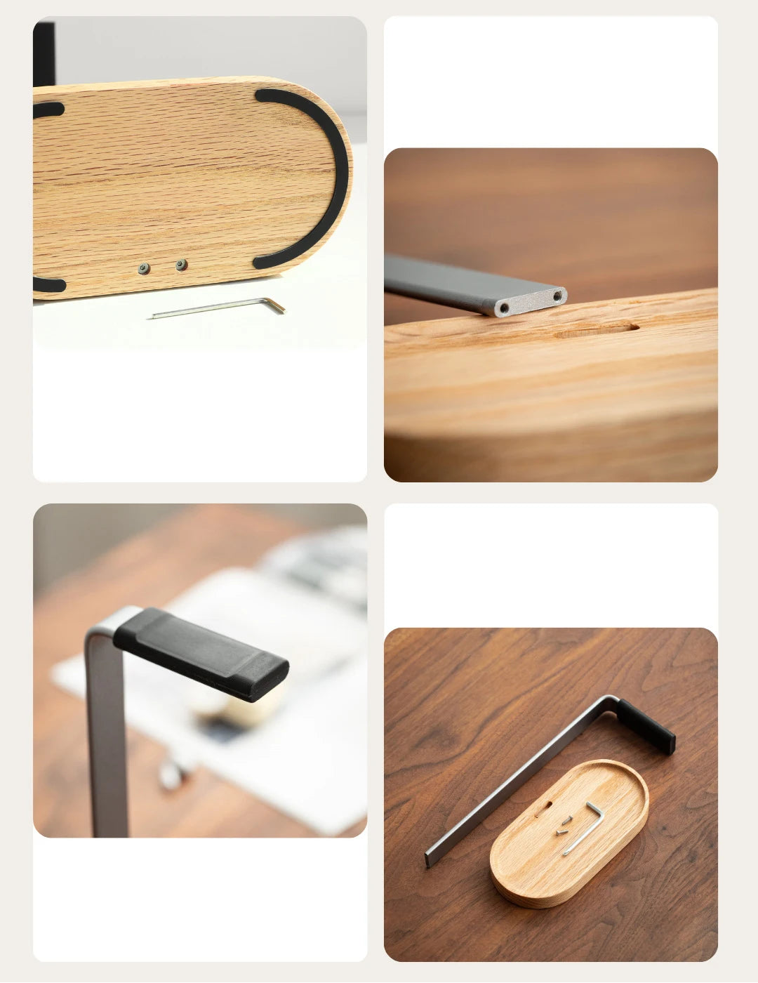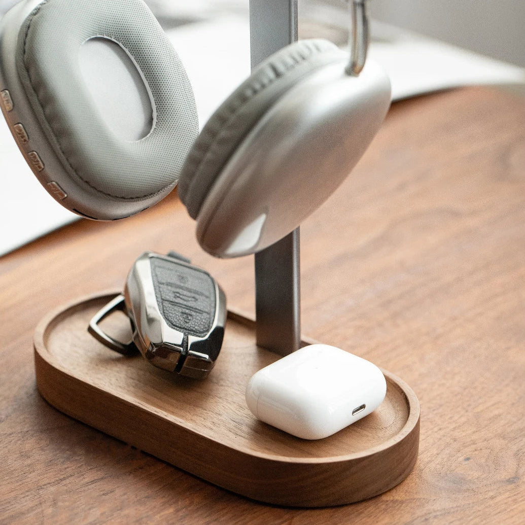 Organize your workspace with the HeMu Wooden and Metal Headphone Stand, a stylish and practical solution for keeping your headphones neatly displayed and easily accessible. Designed with a blend of solid wood and durable aluminum alloy, it combines modern aesthetics with stability and strength.