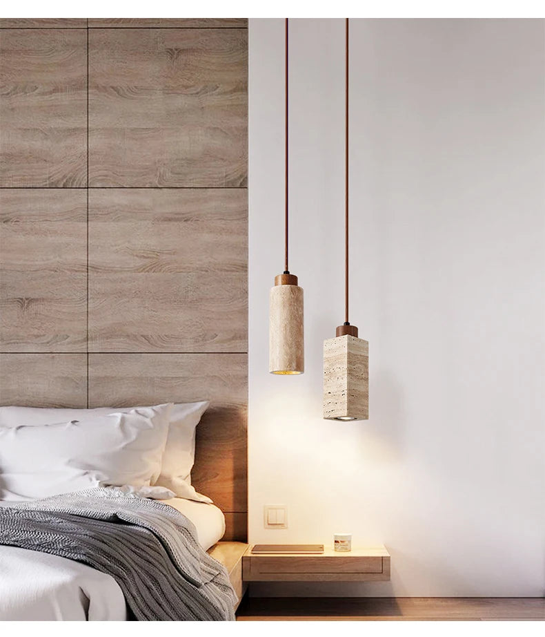 Yellow Travertine Pendant Lamp – Wabi-Sabi Marble Light